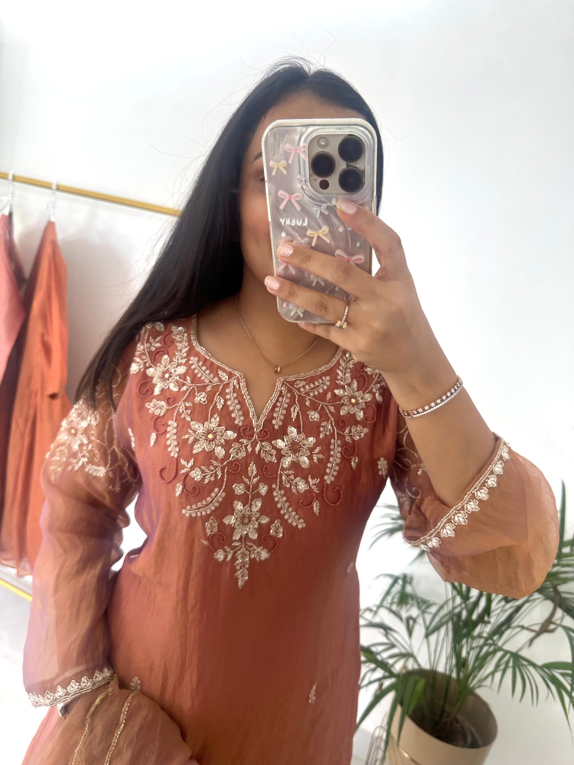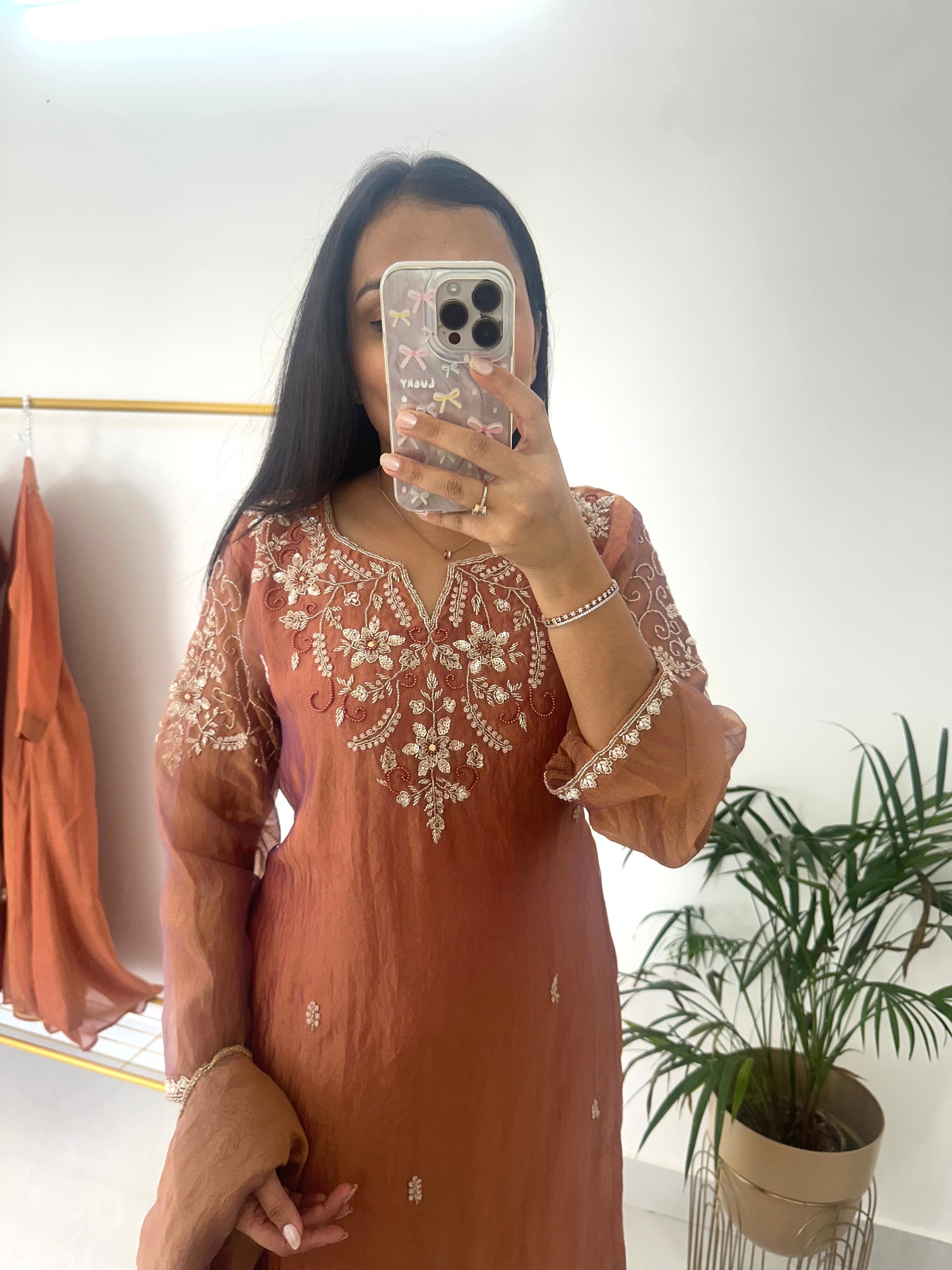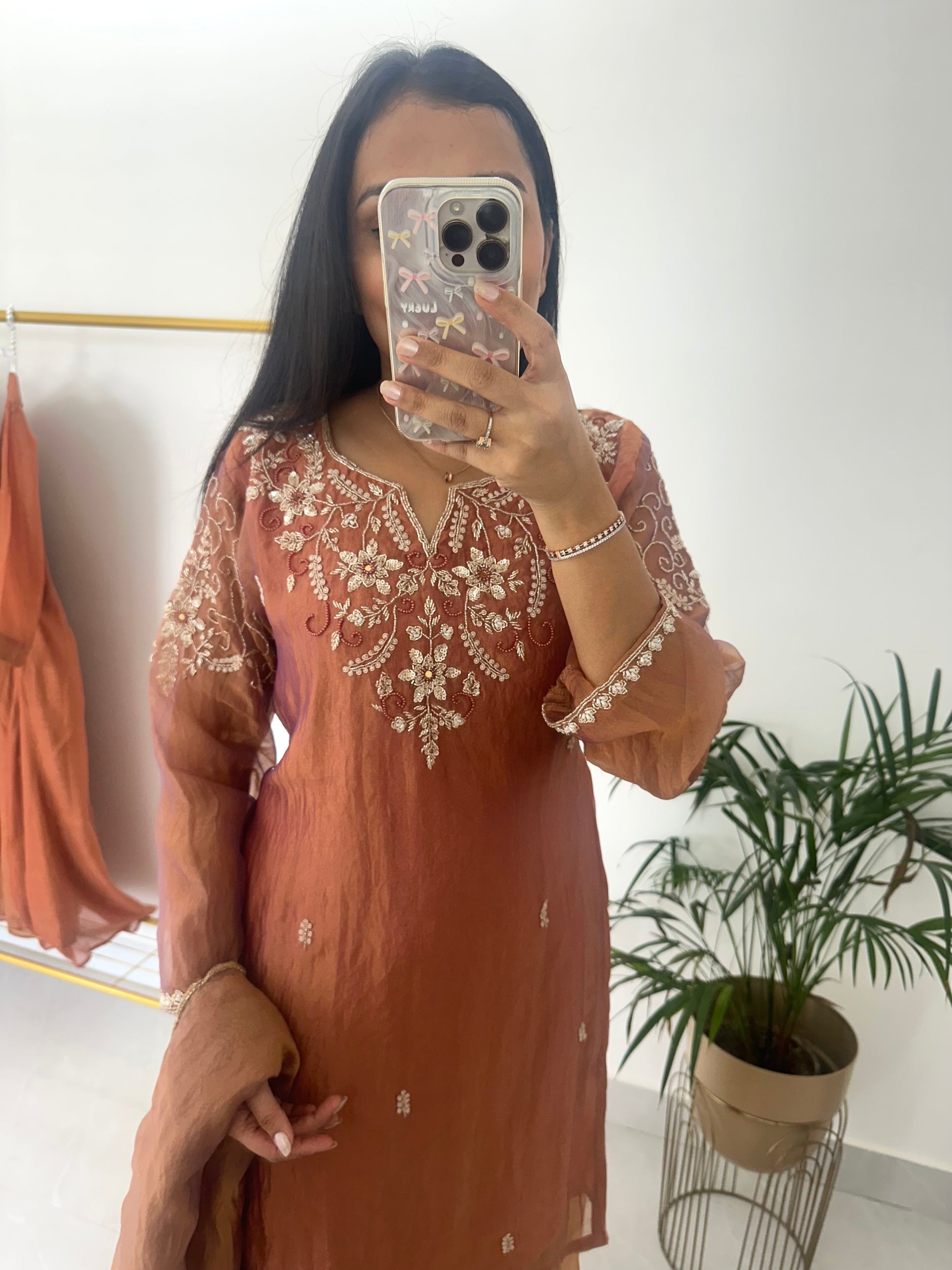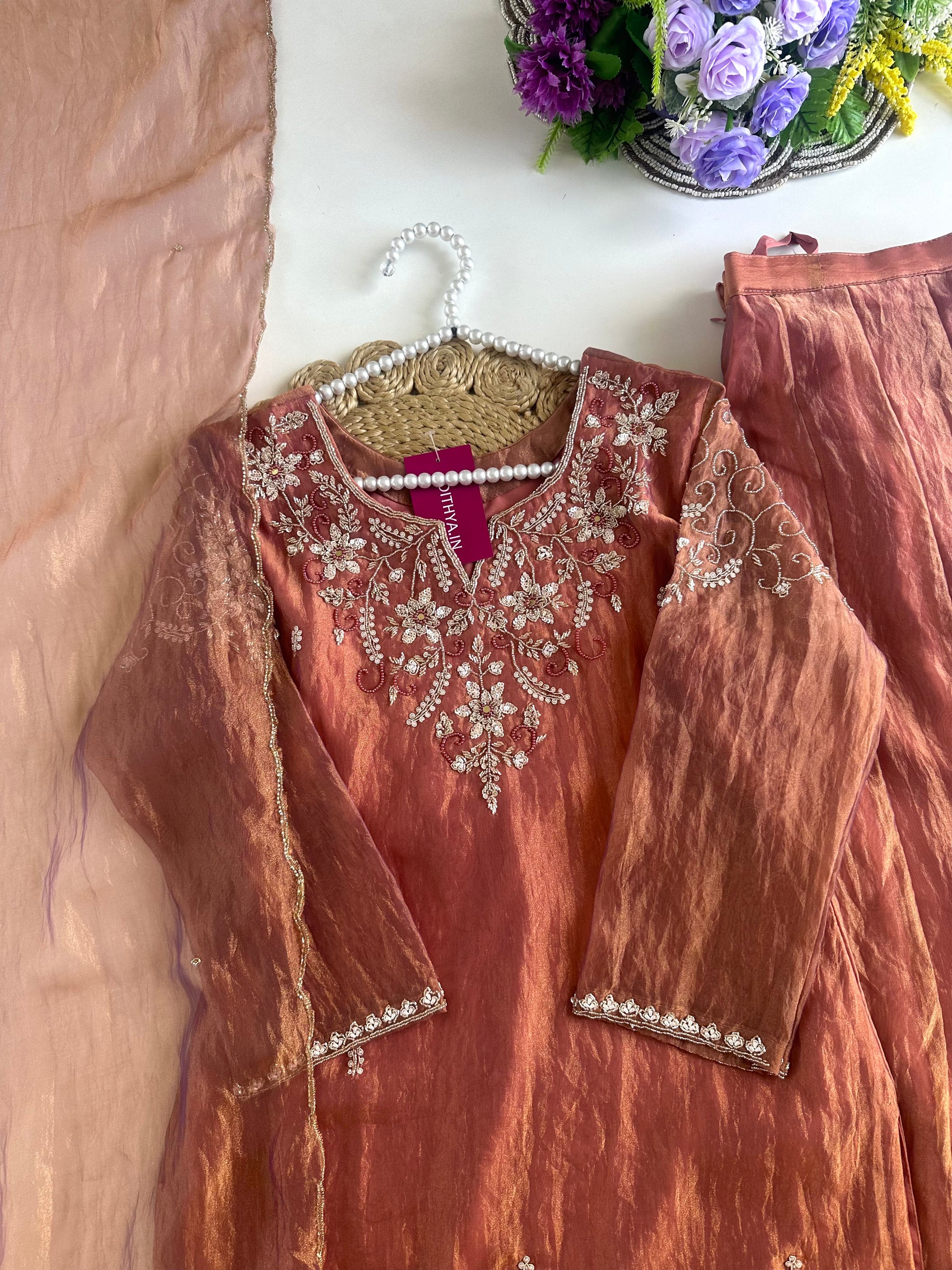 K180 - Tissue silk handwork short Kurti with palazzo and dupatta
