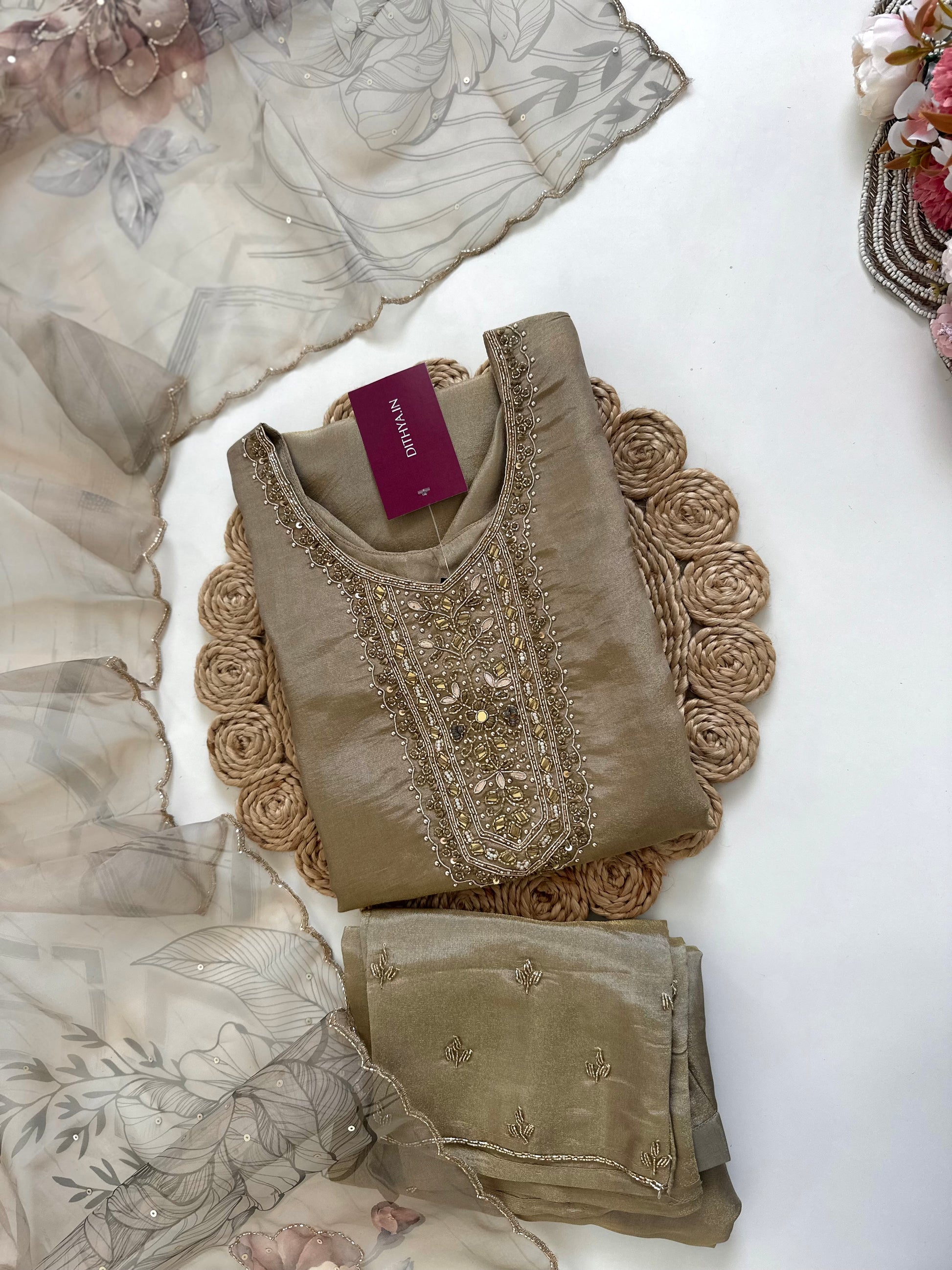 K106 - Tissue silk handwork straight kurti with pants and dupatta
