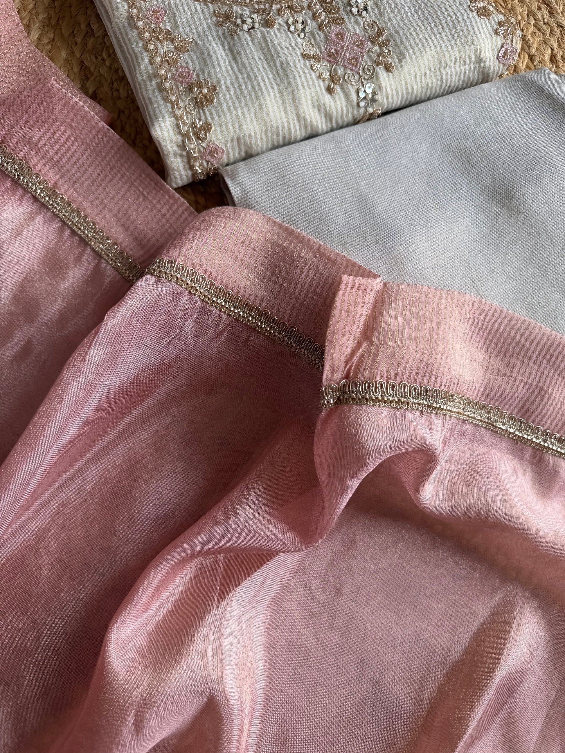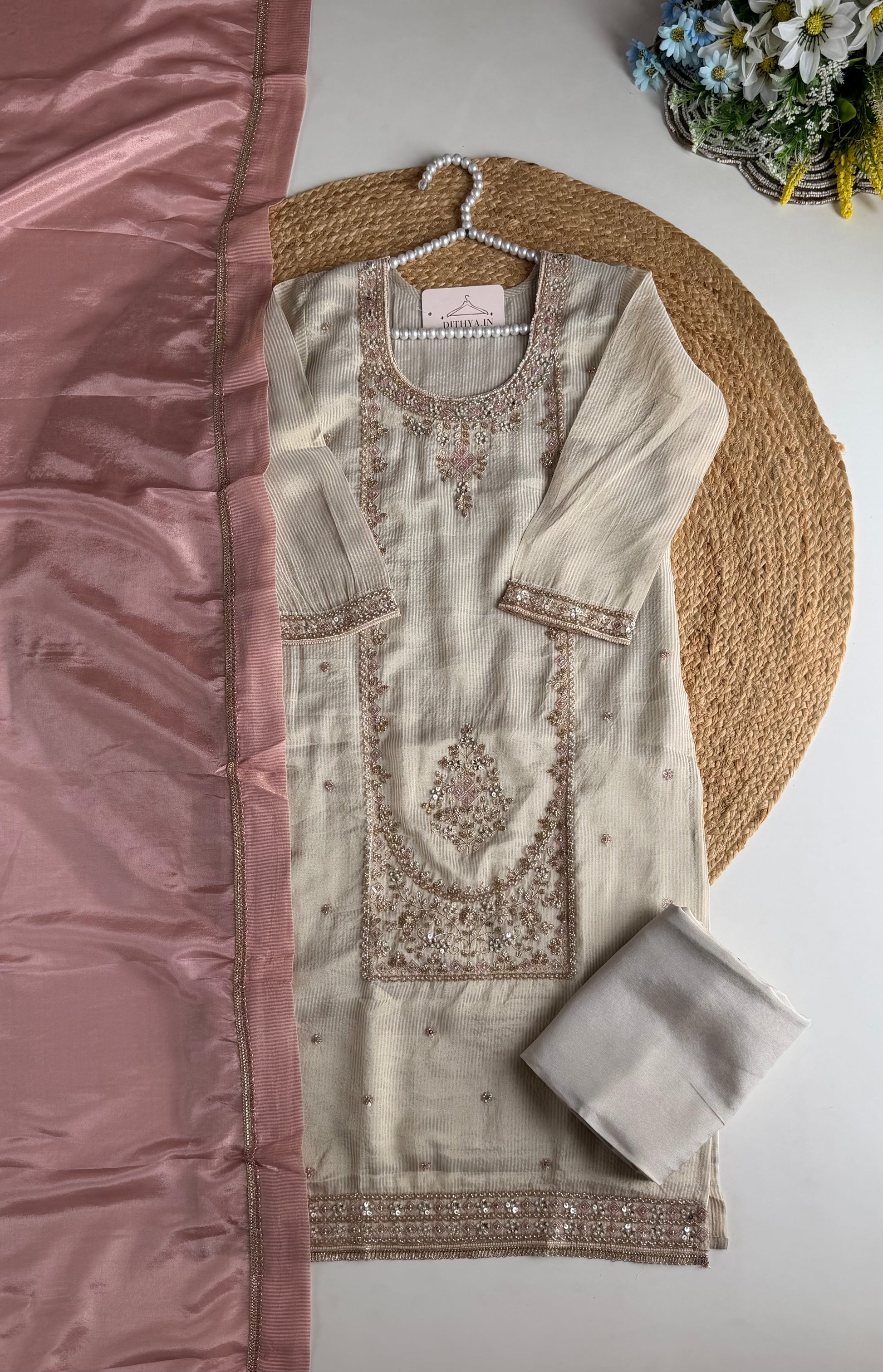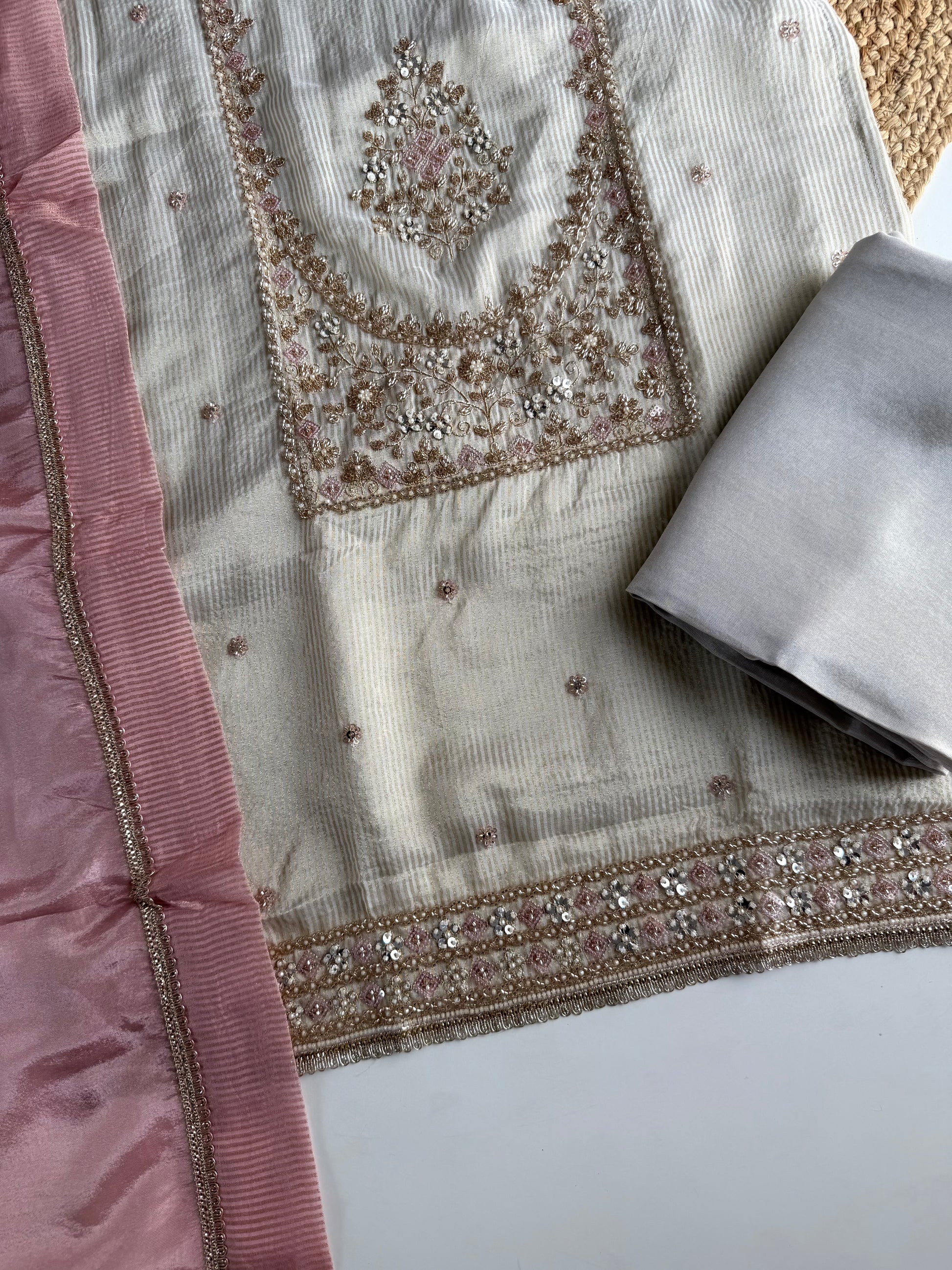 K172 - Tissue silk Handwork straight Kurti with pants and dupatta