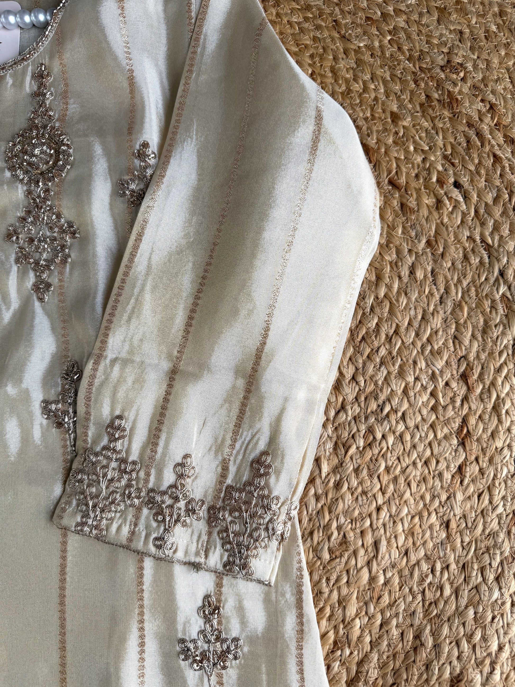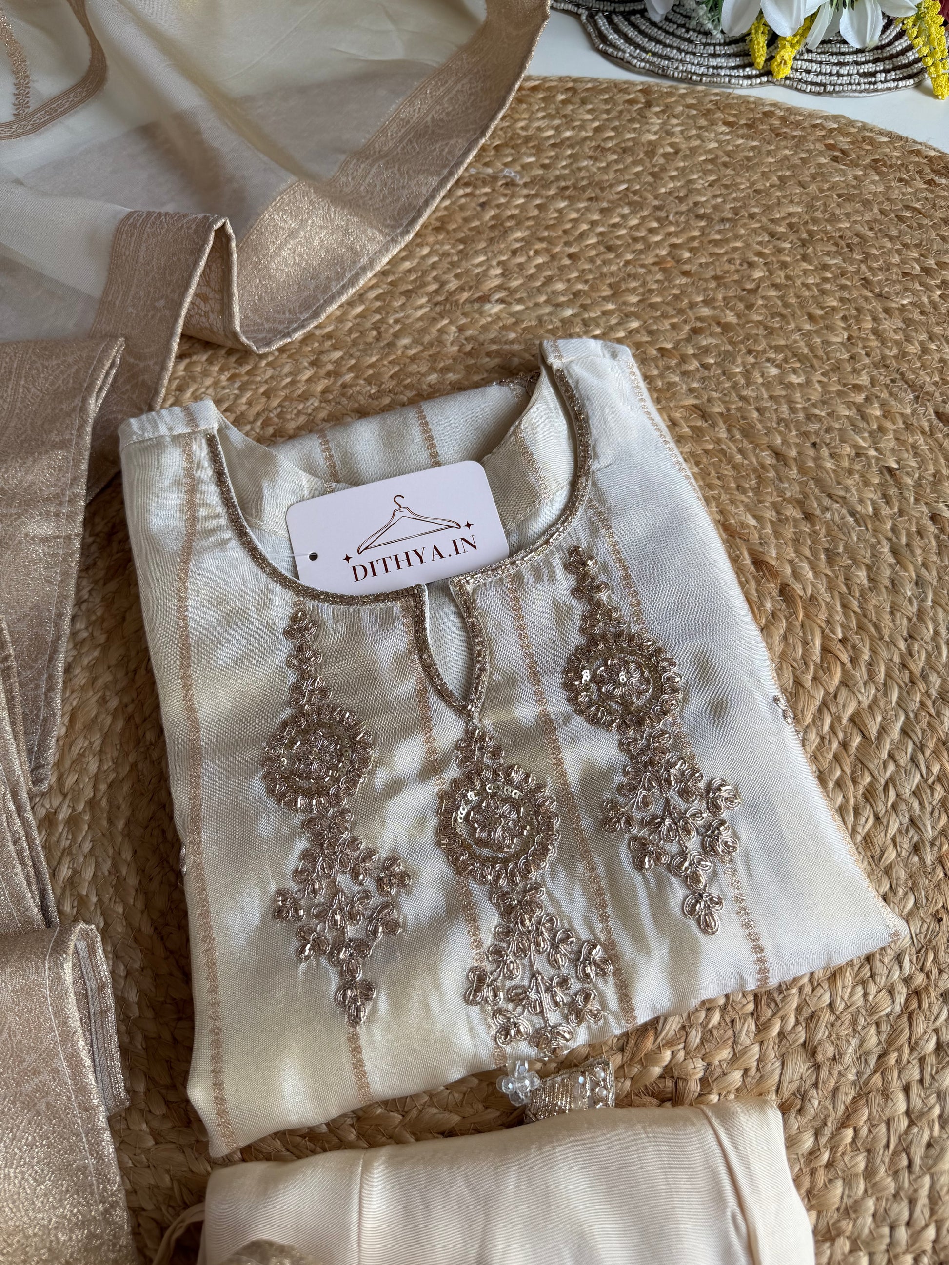 K092 - Tissue silk handwork straight Kurti with pants and dupatta