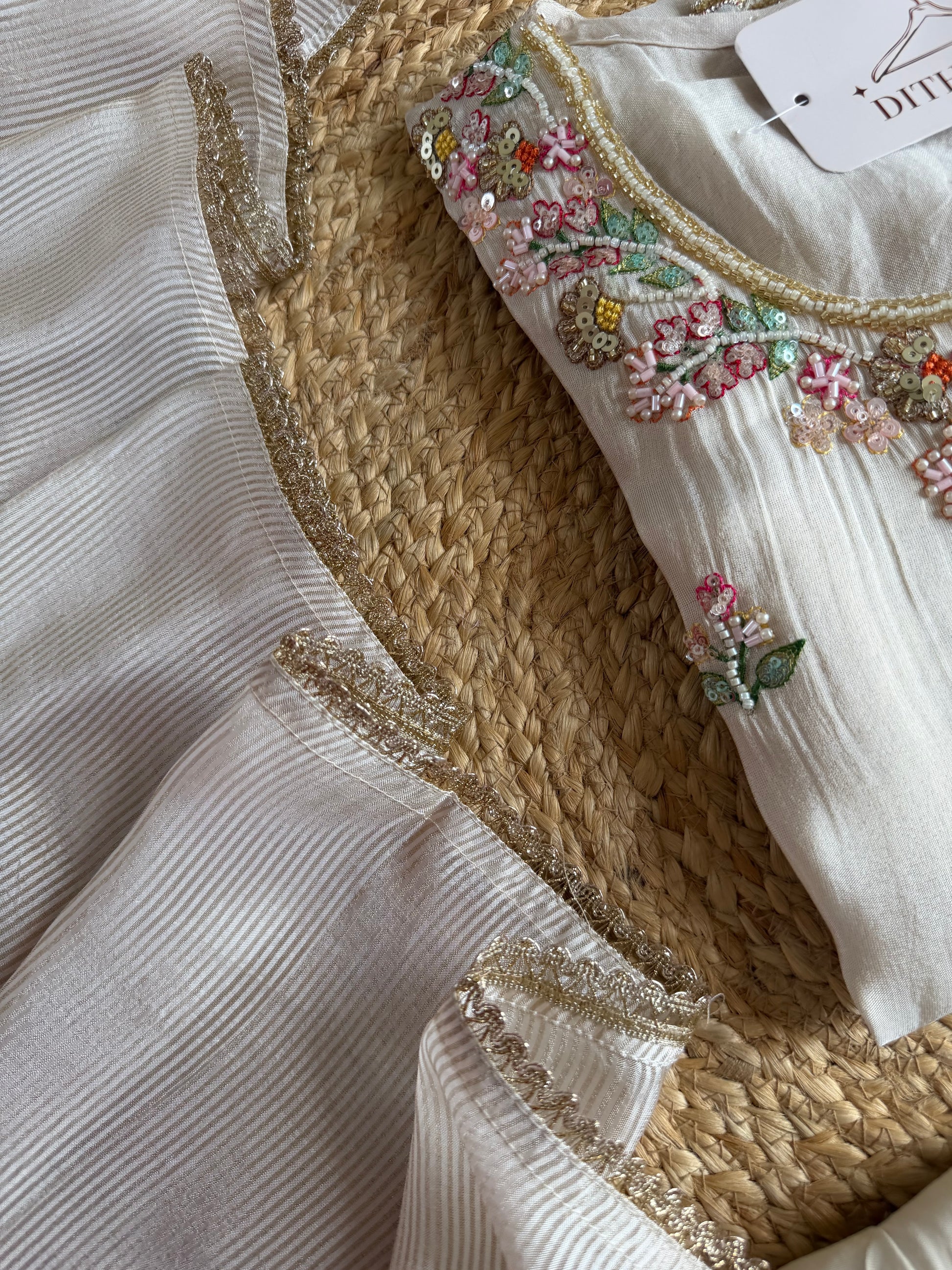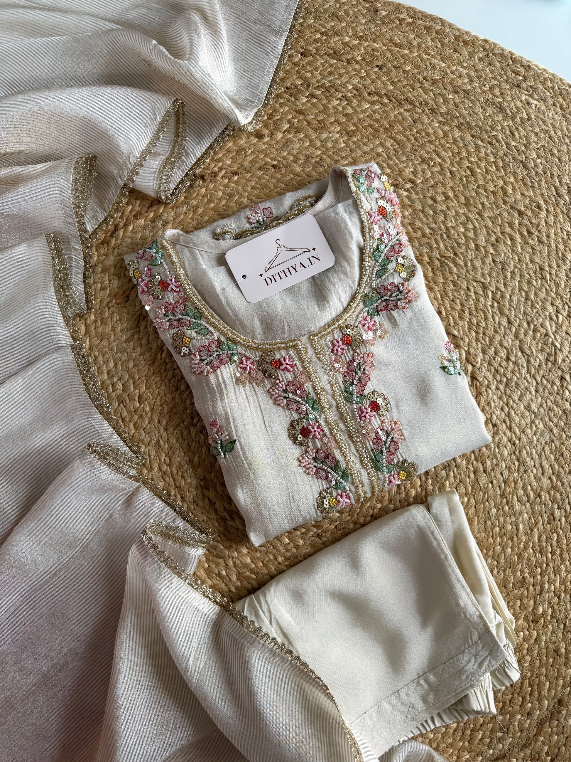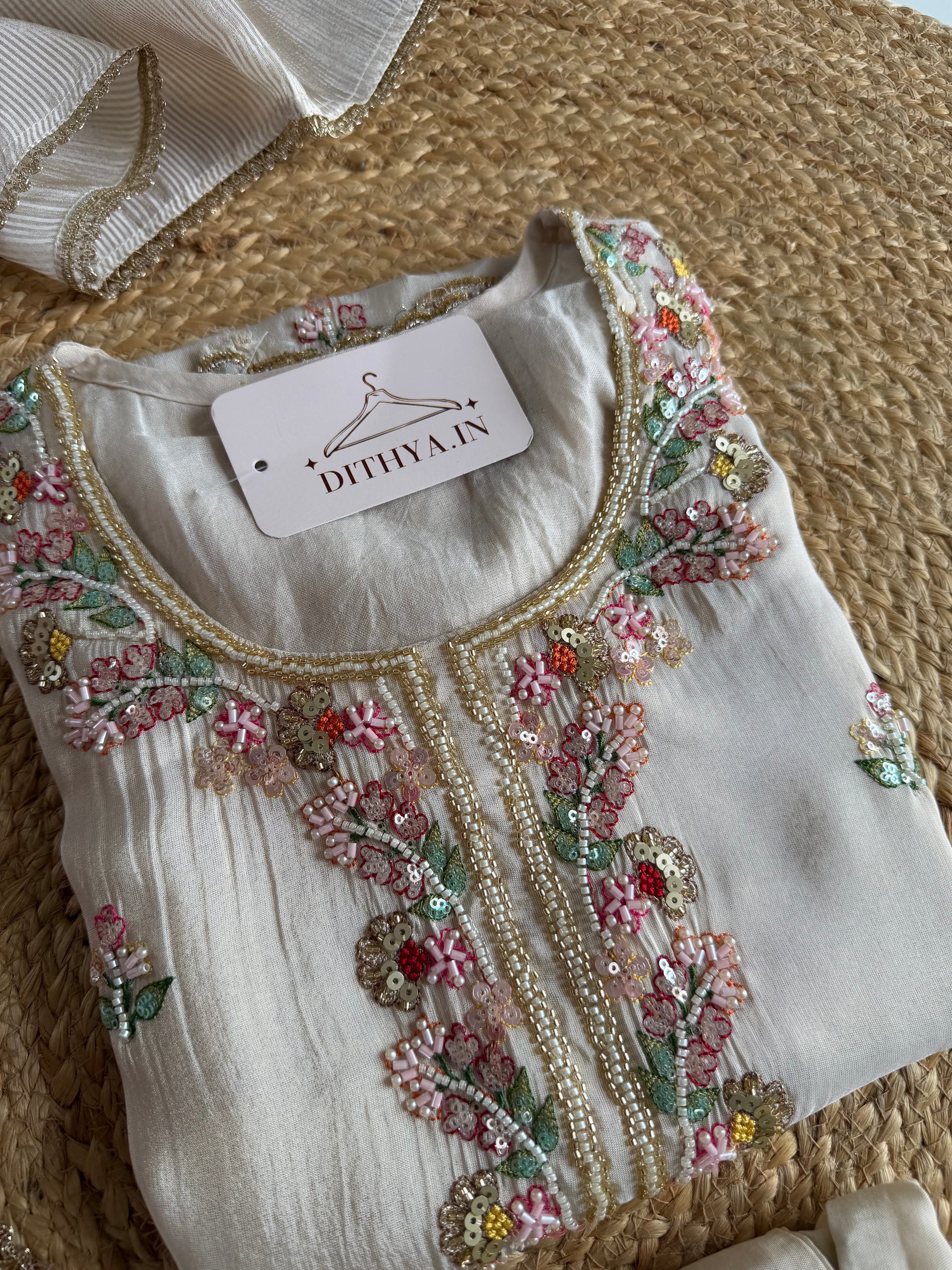 K681 - Tissue silk handwork straight Kurti with pants and dupatta