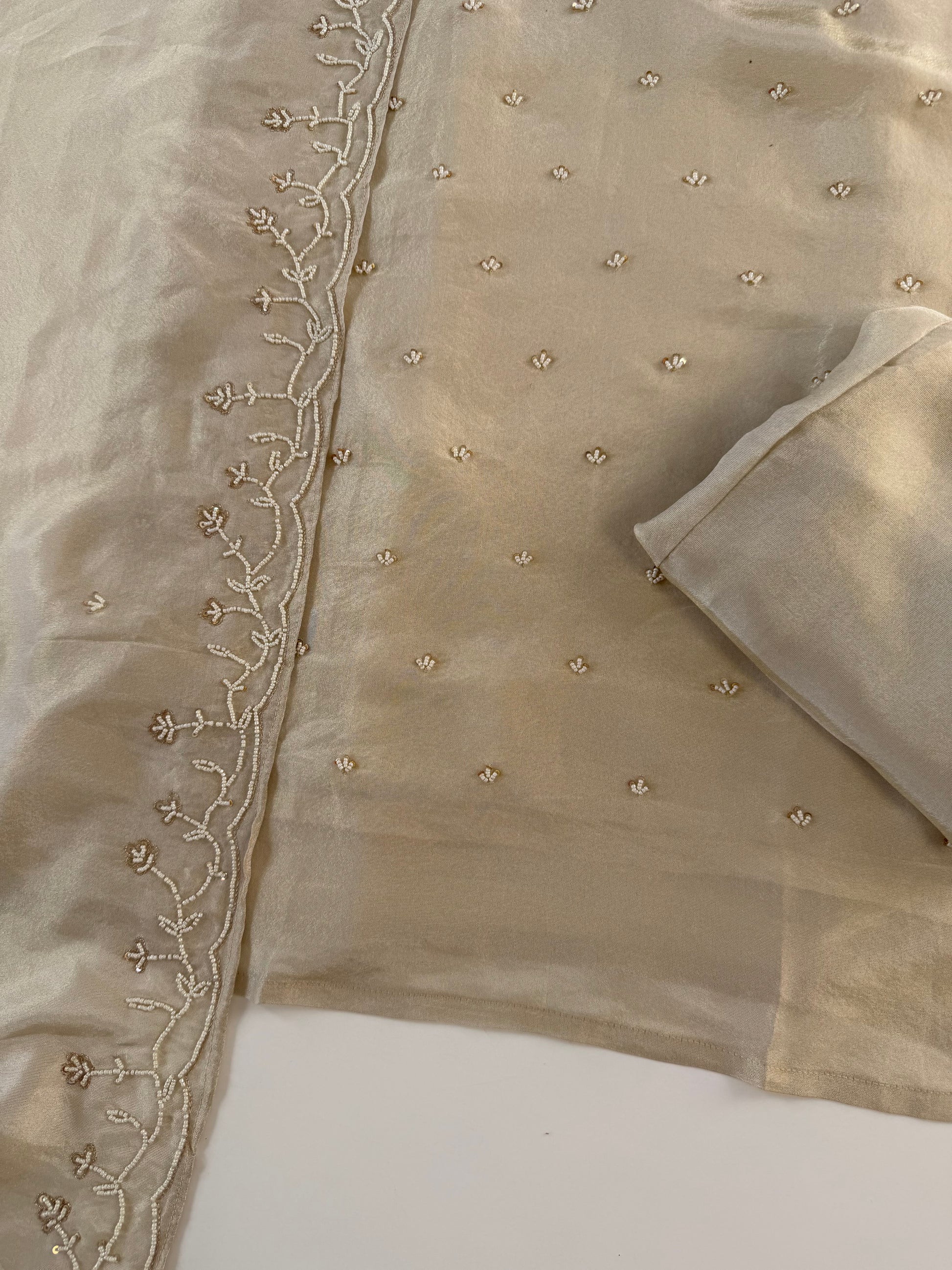 K602 - Tissue silk pearl work straight Kurti with pants and dupatta in 2 colours