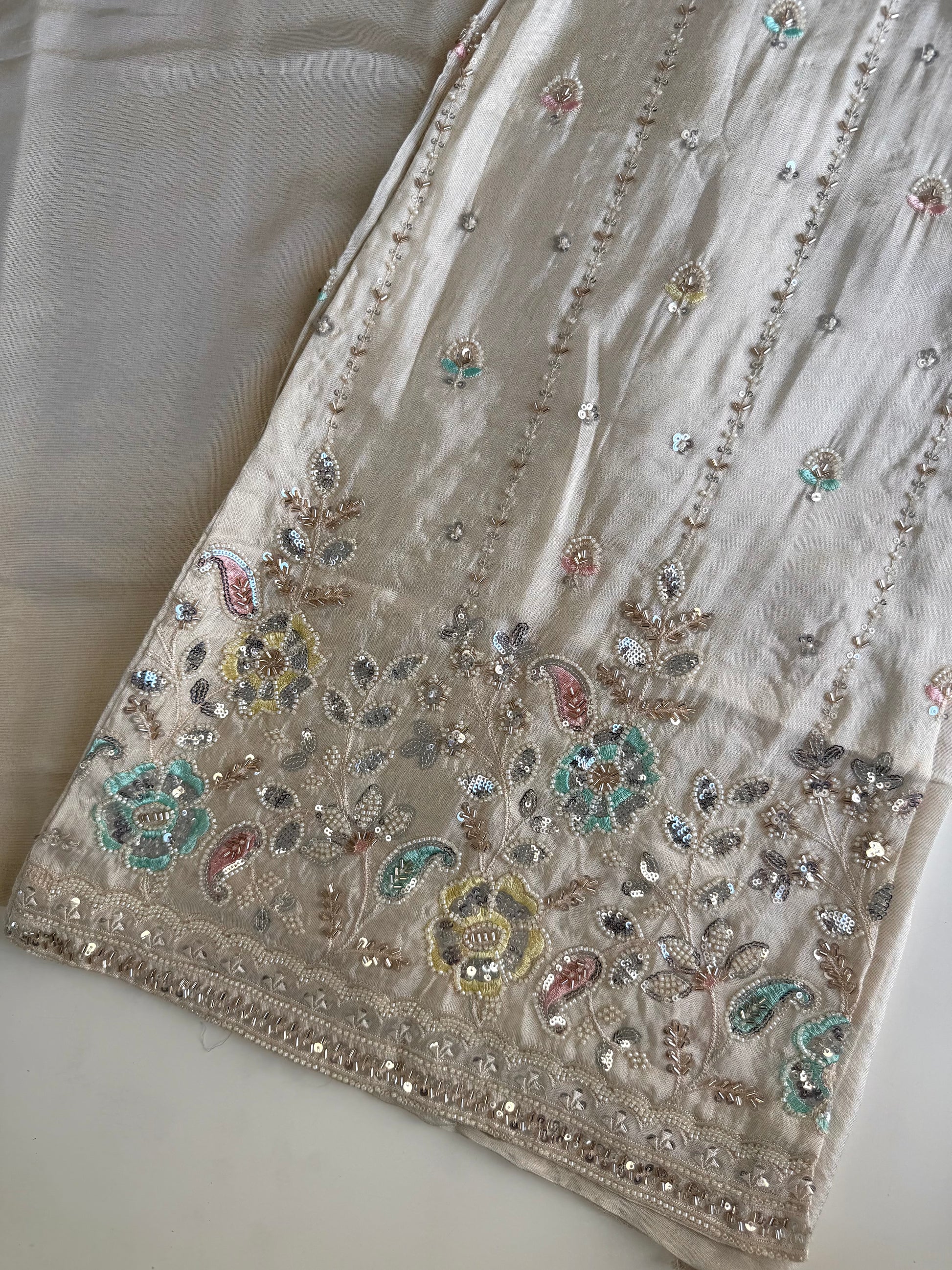 K569 - Tissue silk straight Kurti with heavy palazzo and dupatta