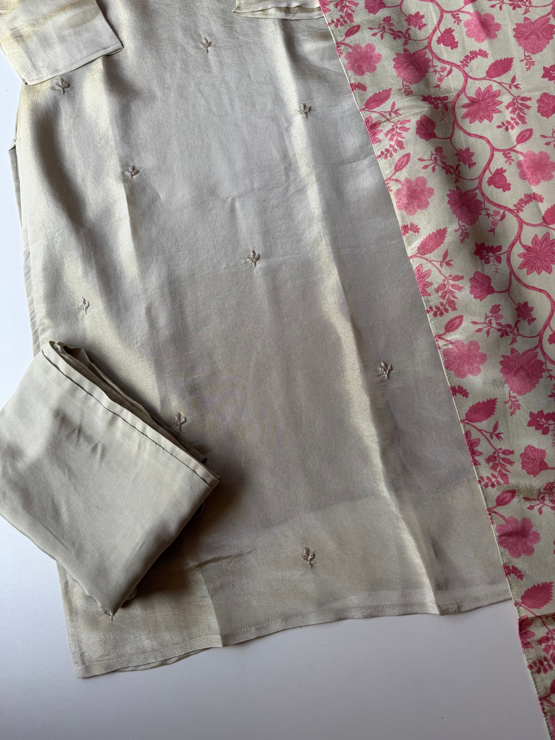 K590 - Tissue silk straight Kurti with pants and dupatta
