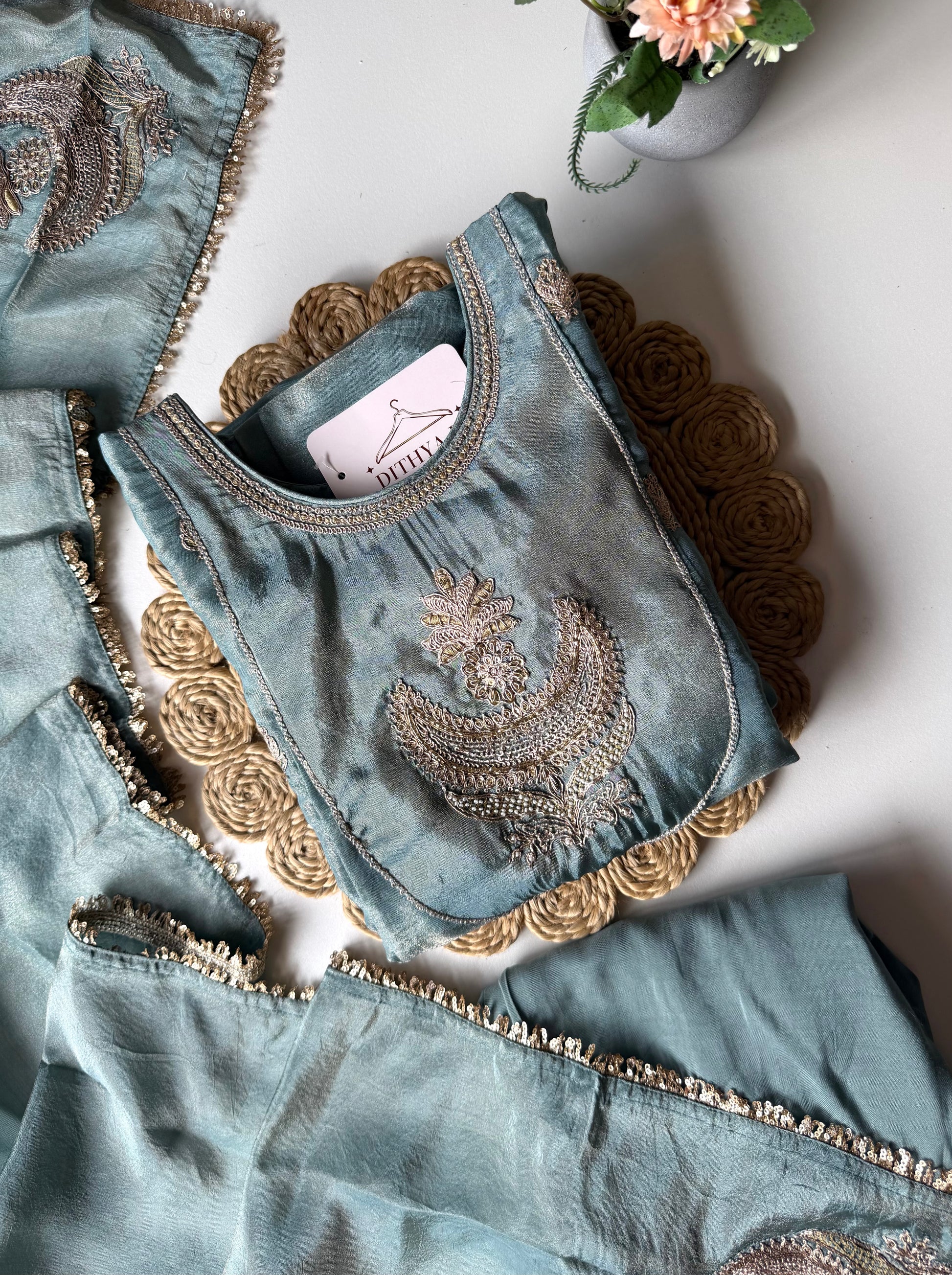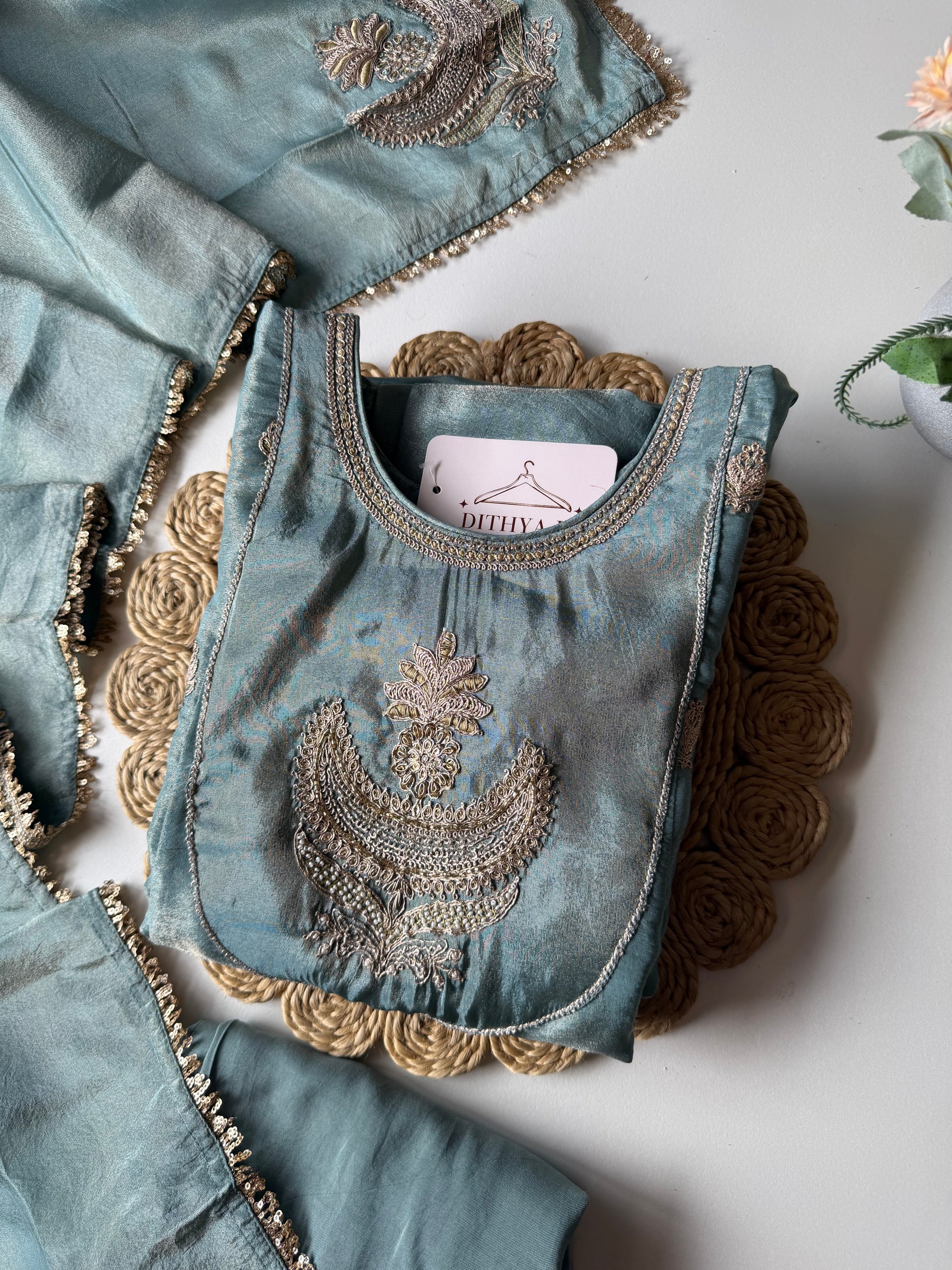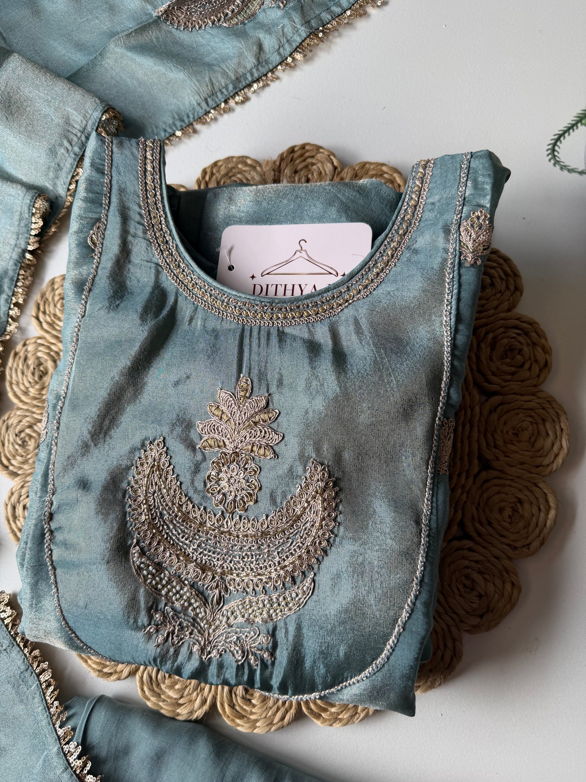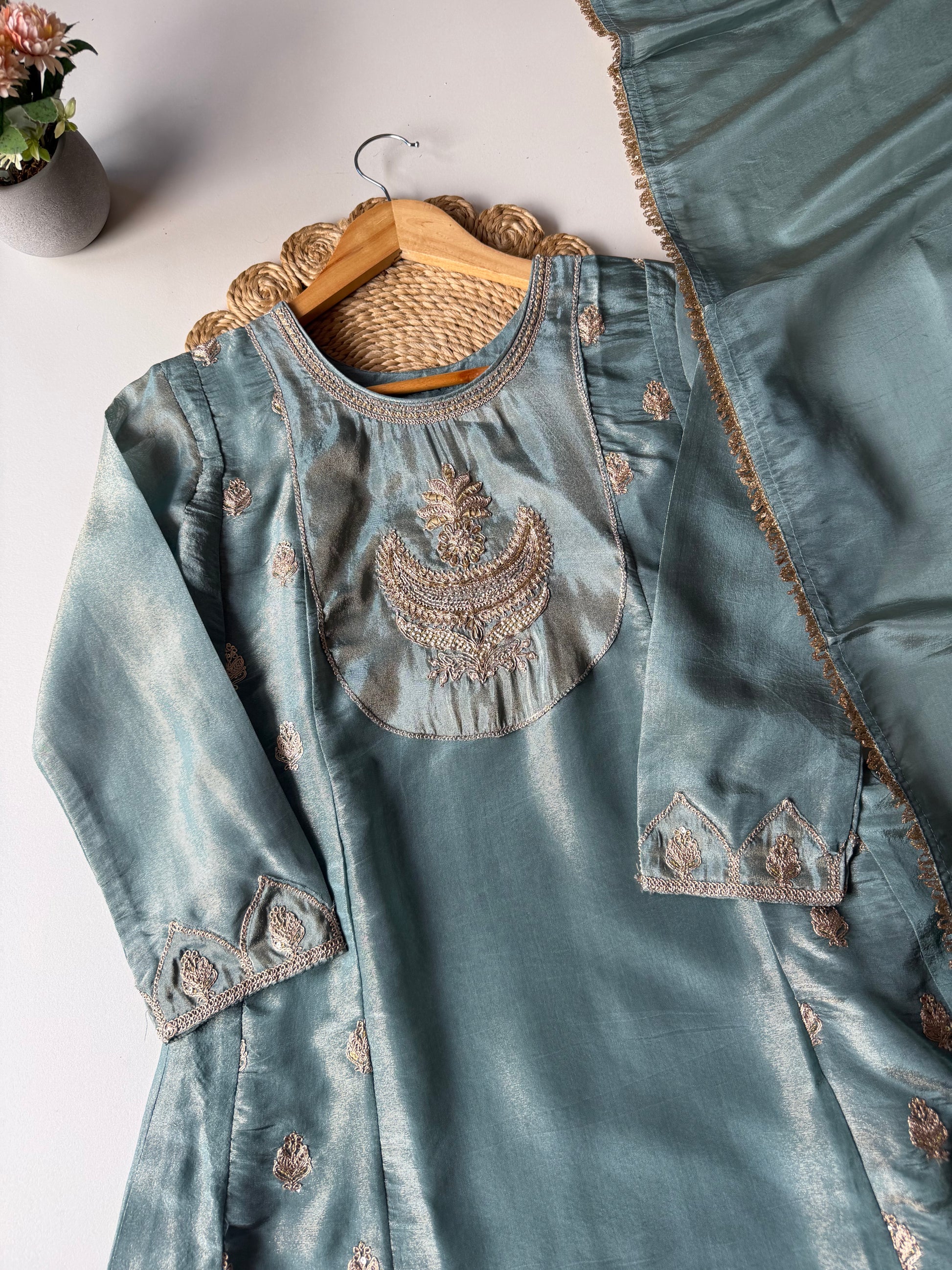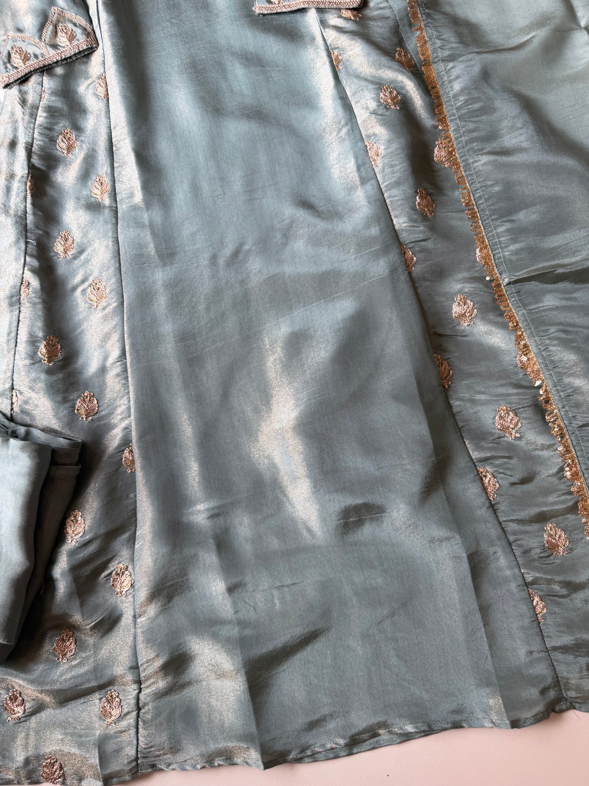 K092 - Tissue silk zari Anarkali with pants and dupatta