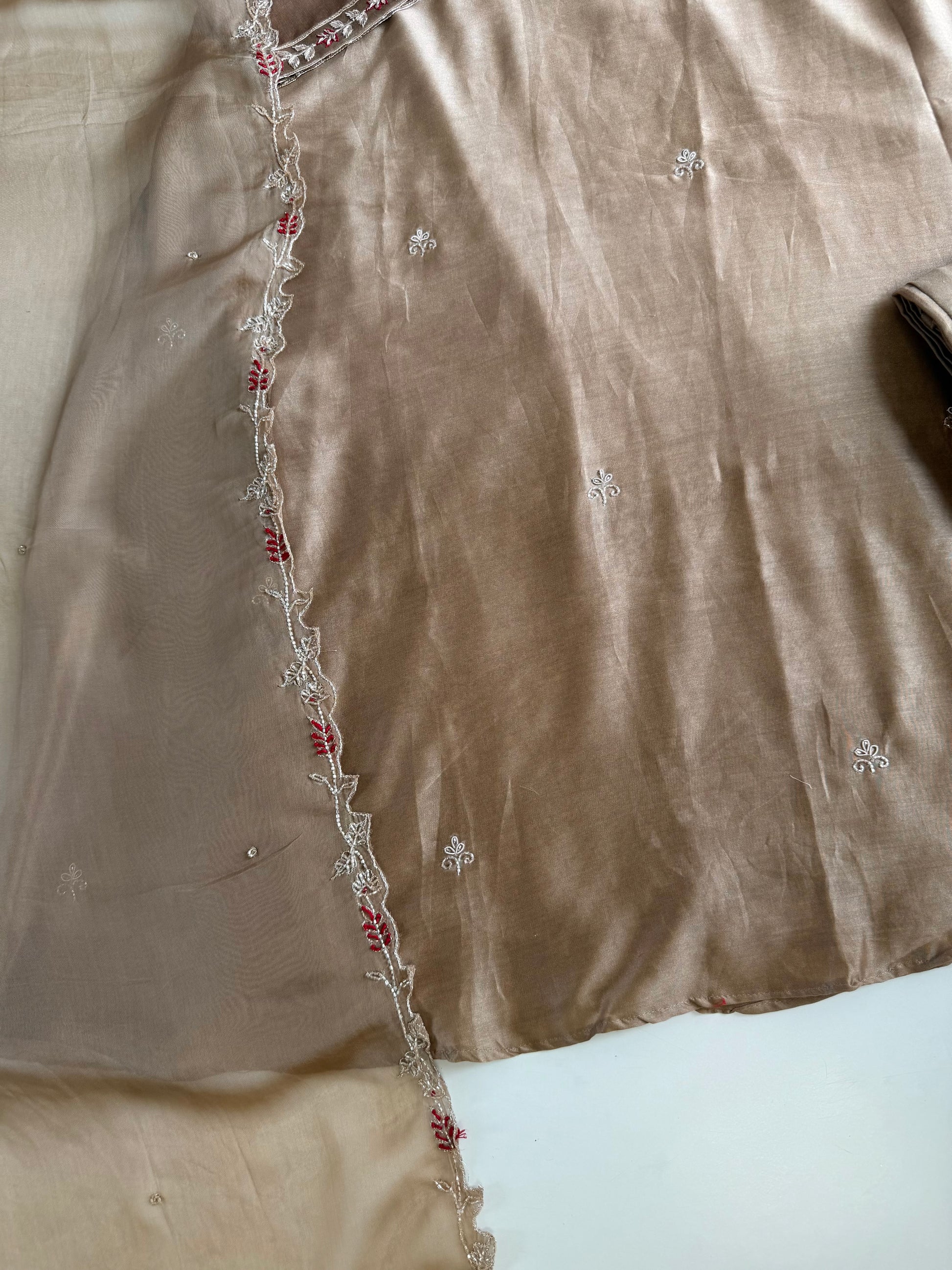 K536 - Titan silk handwork Aline Kurti with pants and dupatta