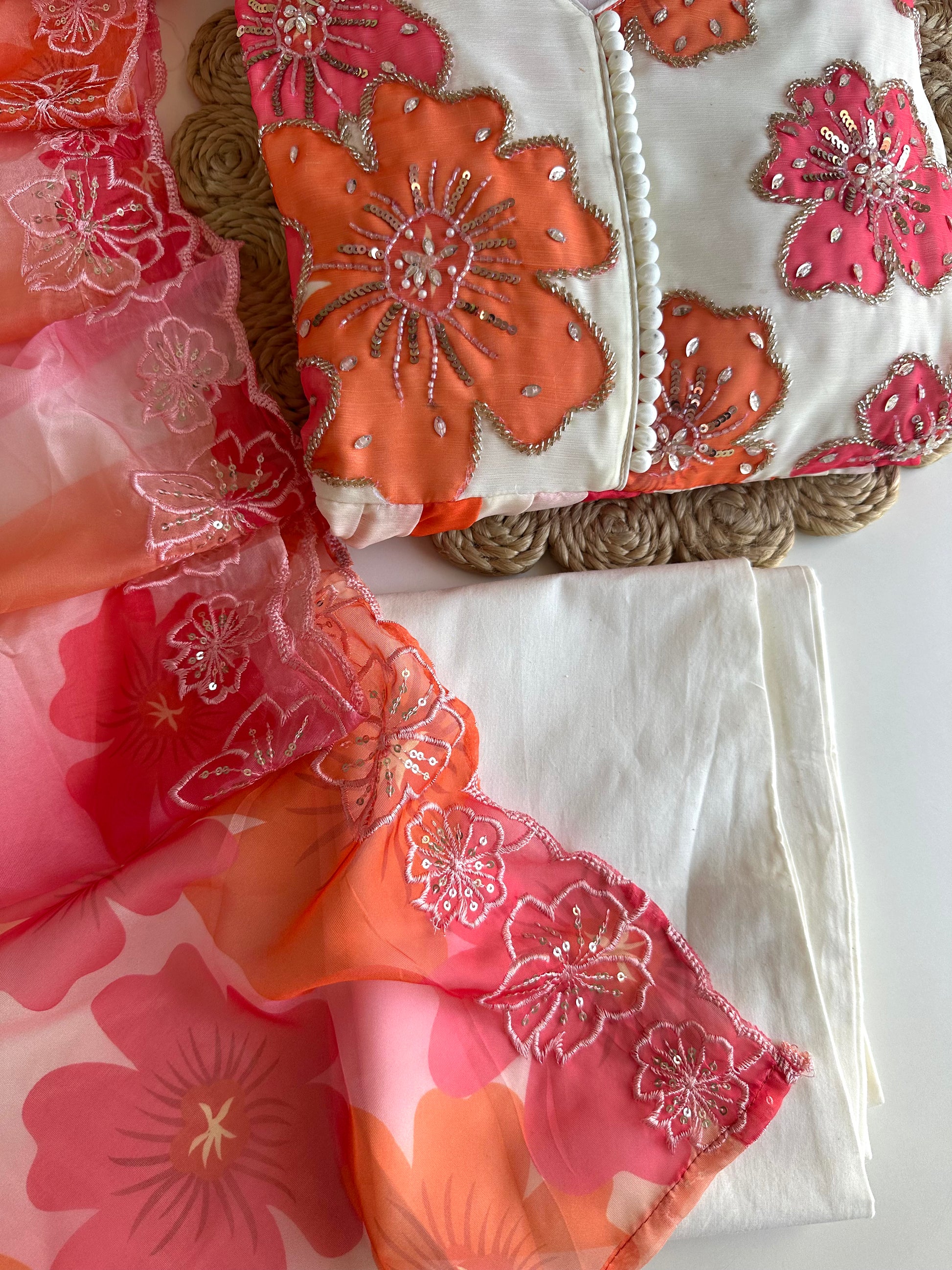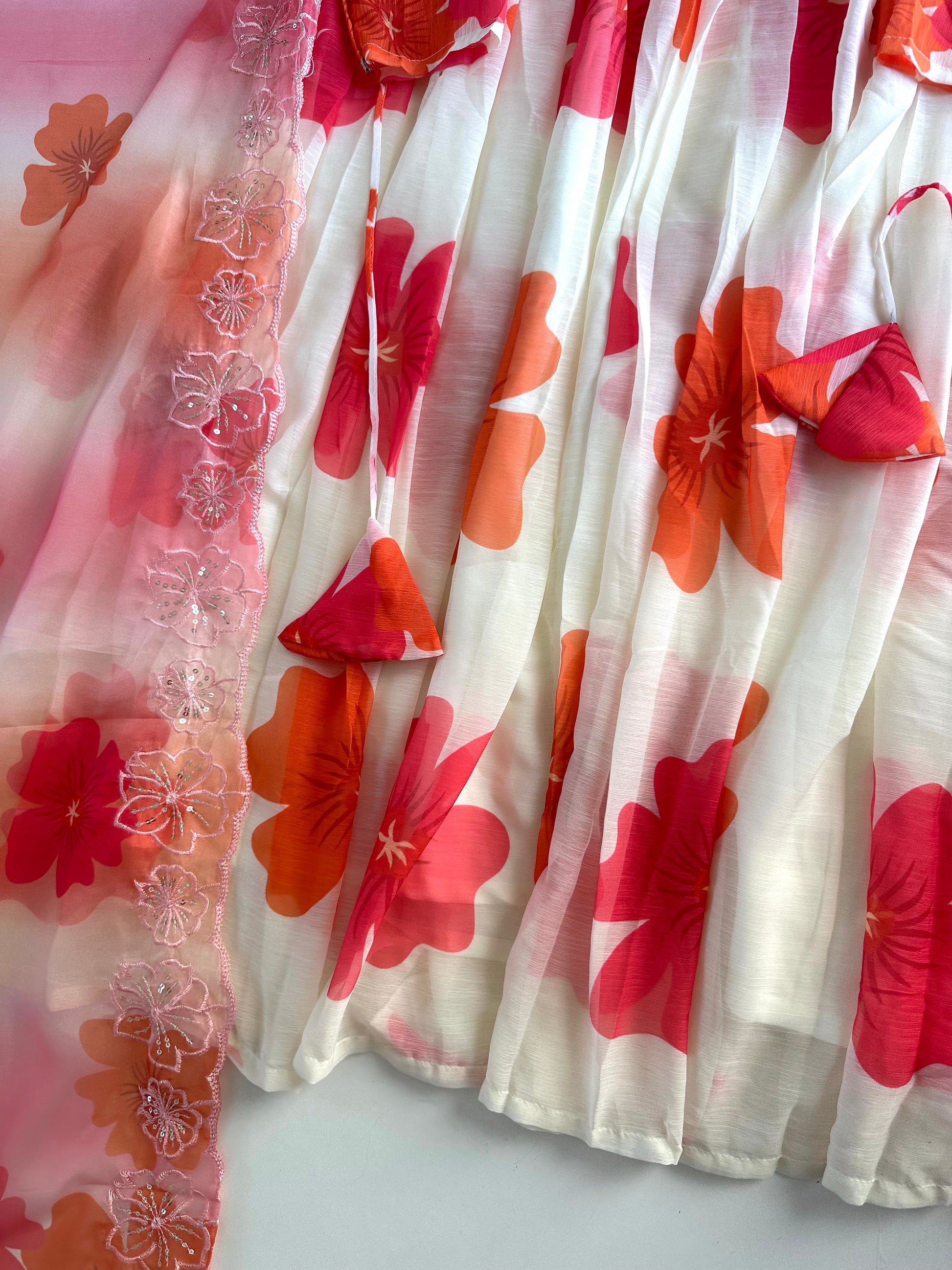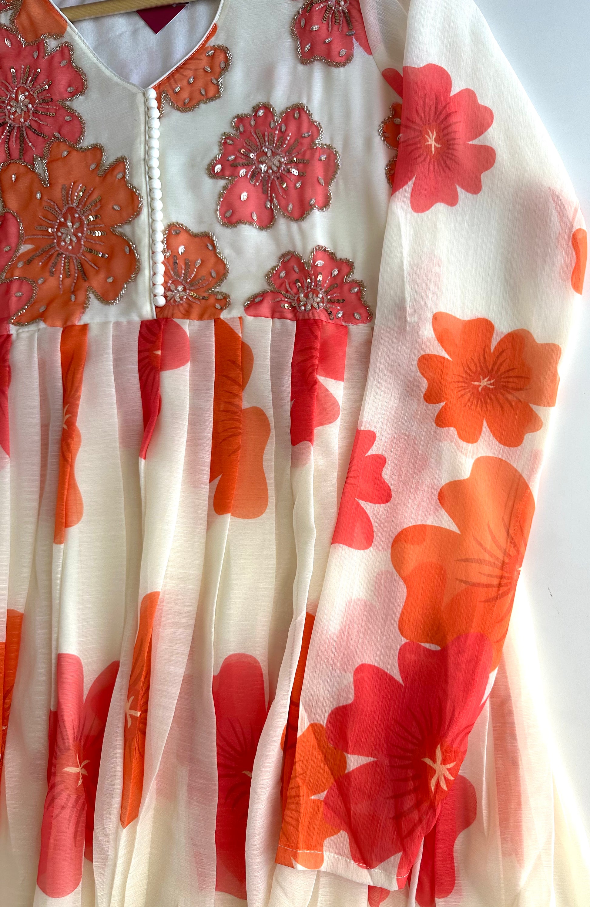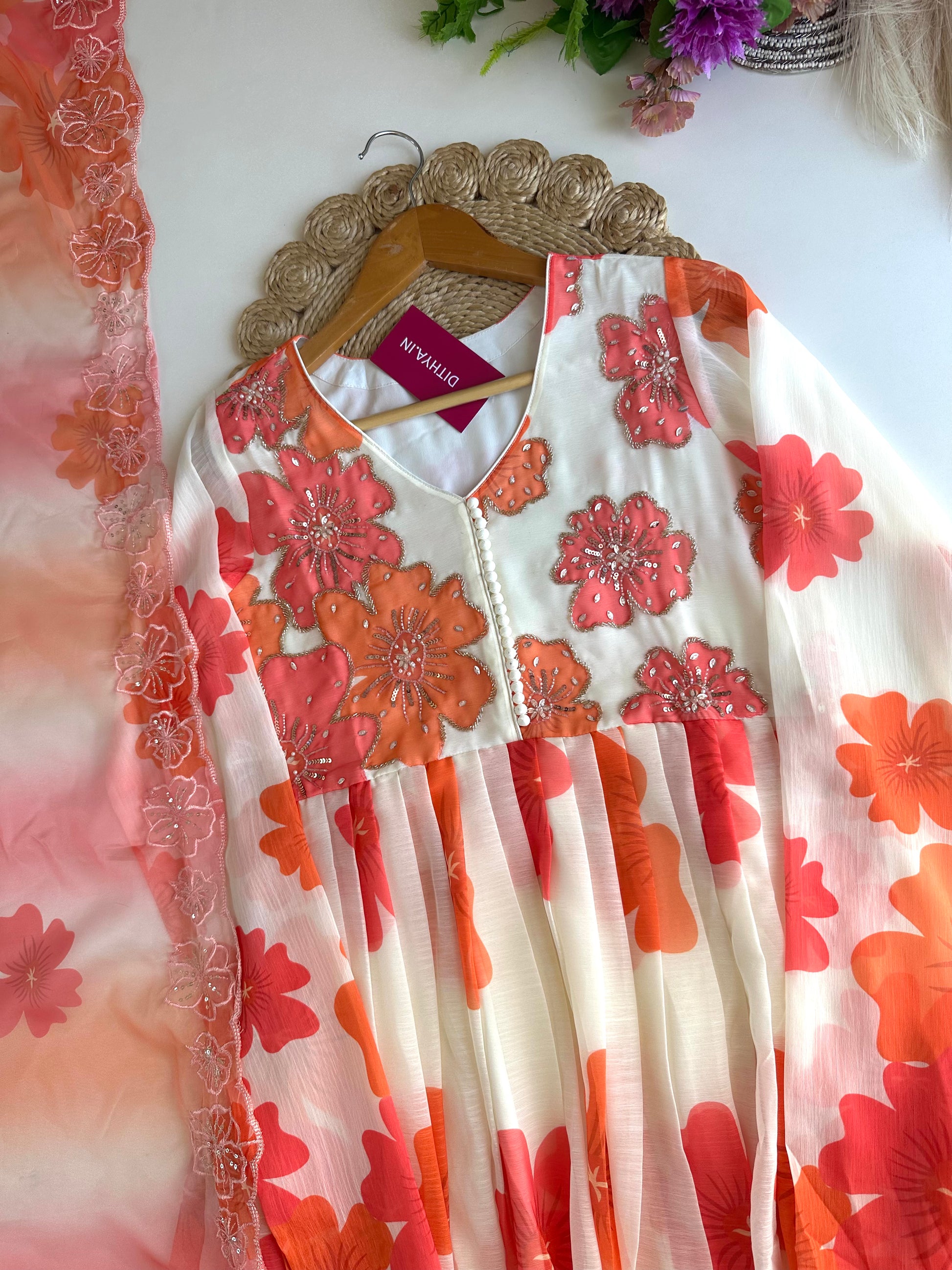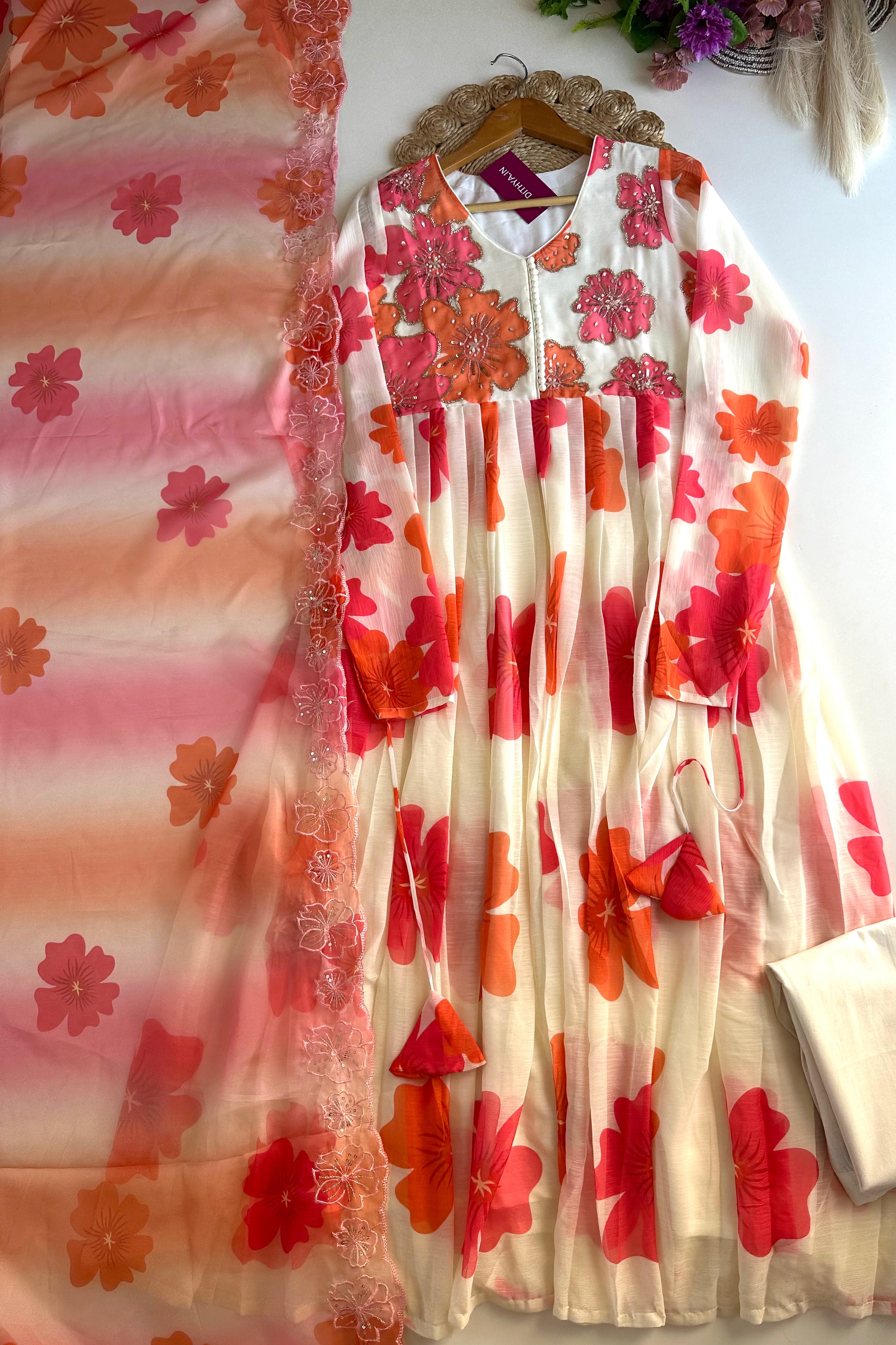 K204 - Georgette Floral Anarkali with pants and dupatta