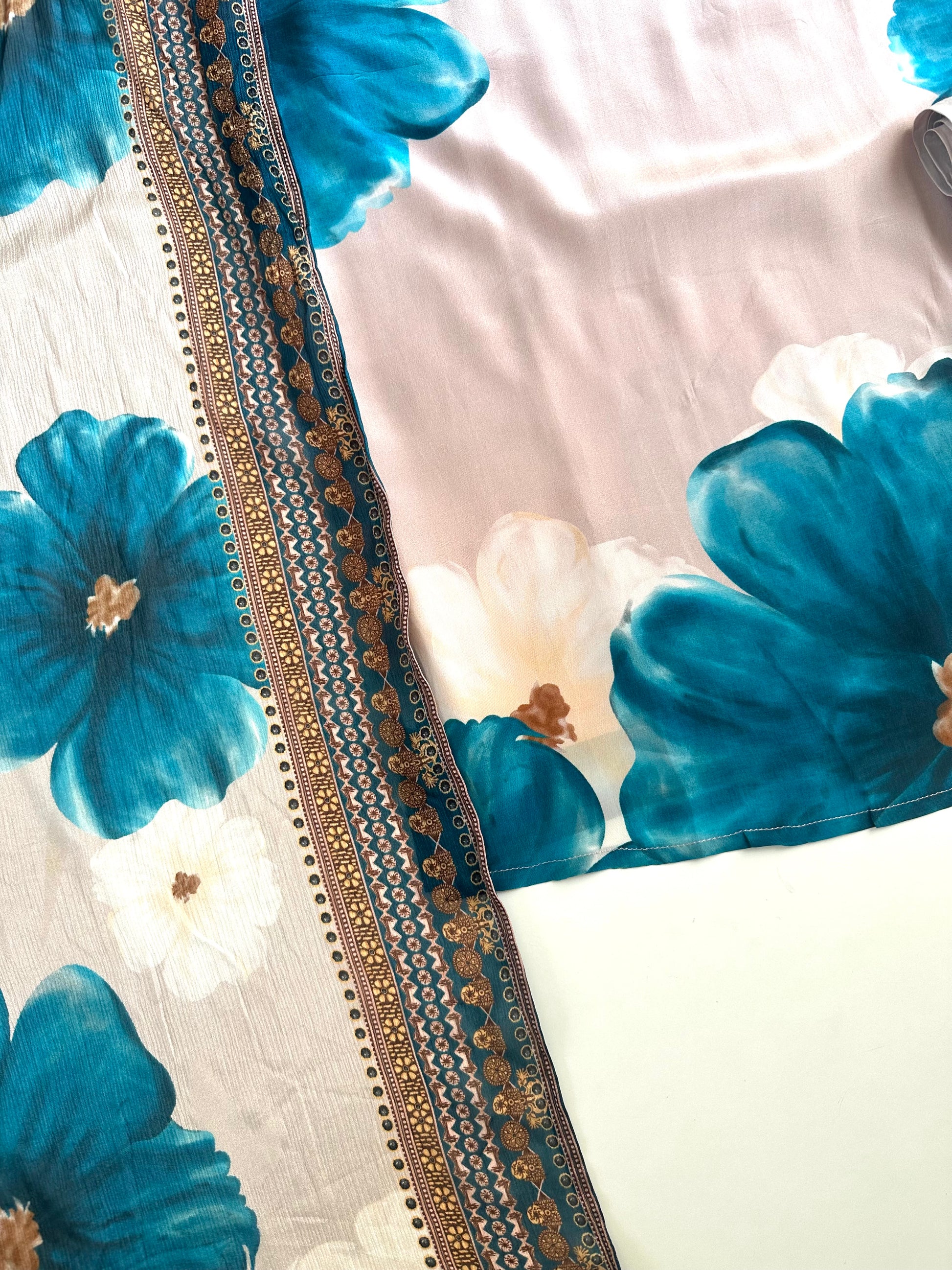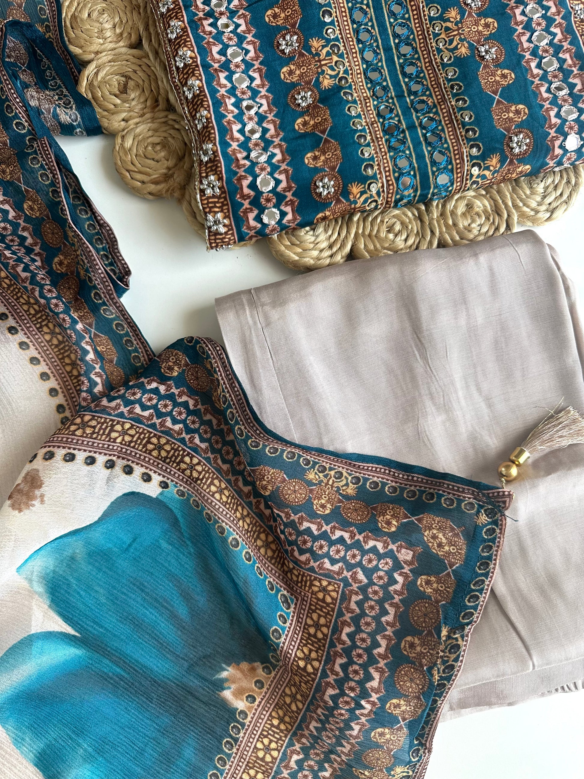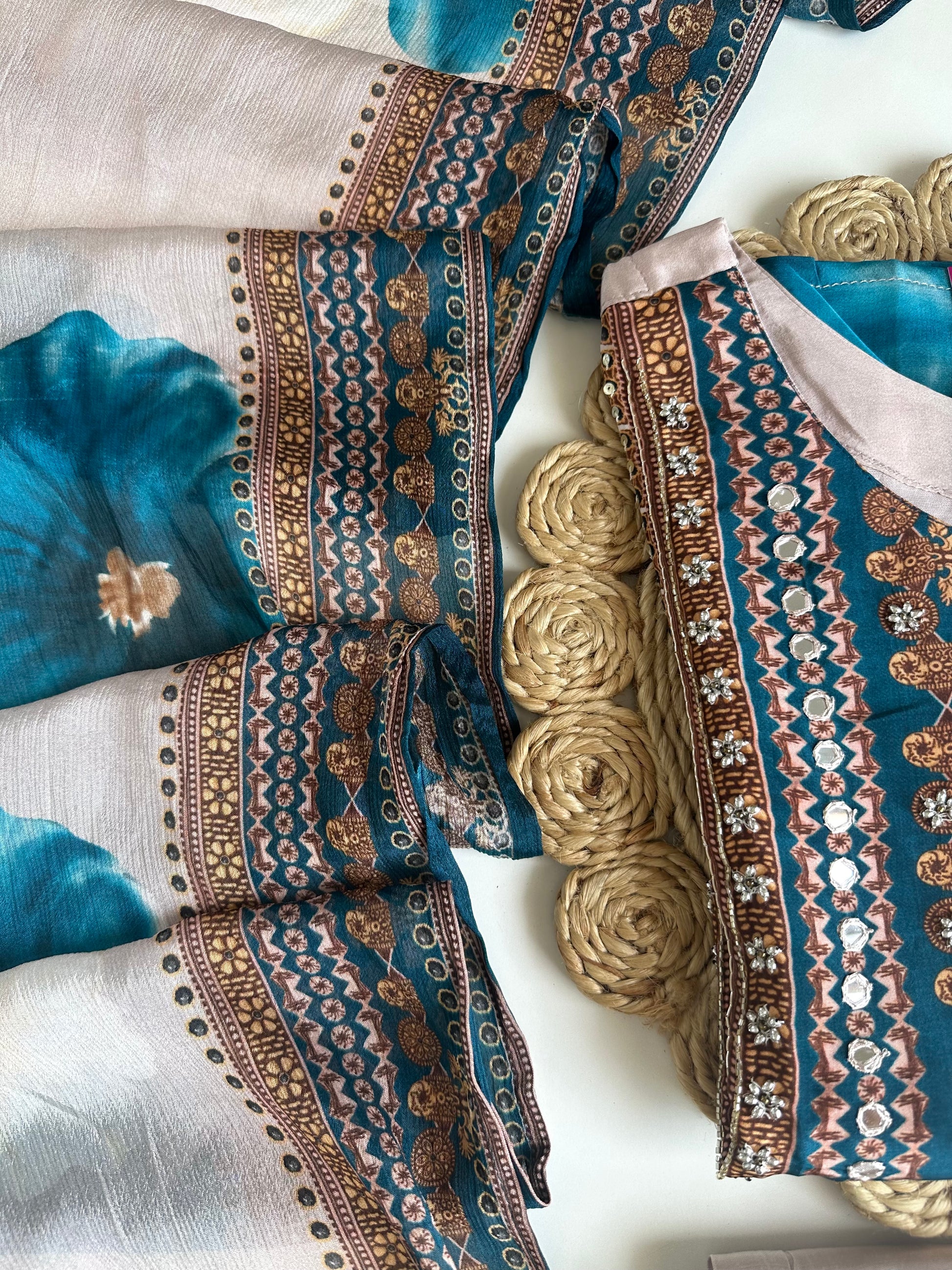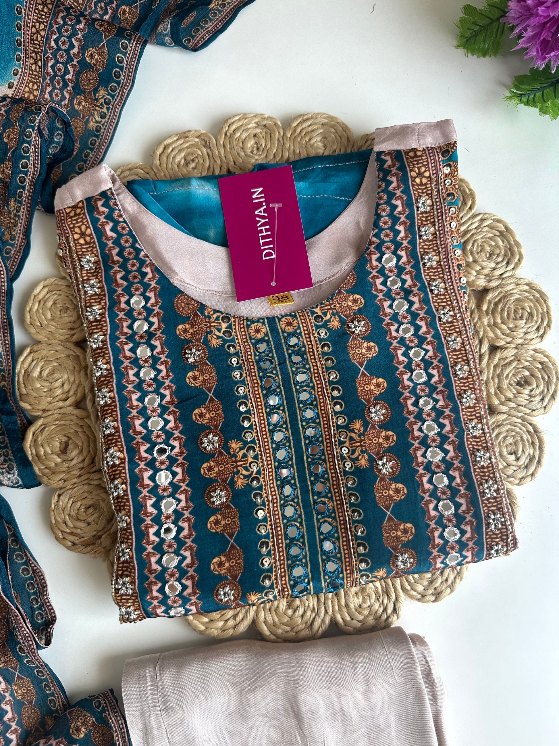 Expertly crafted from pure crape fabric, this breathtaking Kurti boasts intricate floral handwork. Its straight silhouette exudes elegance and sophistication, while the accompanying pants and dupatta complete the look. Perfect for any occasion, this Kurti offers both style and comfort.
