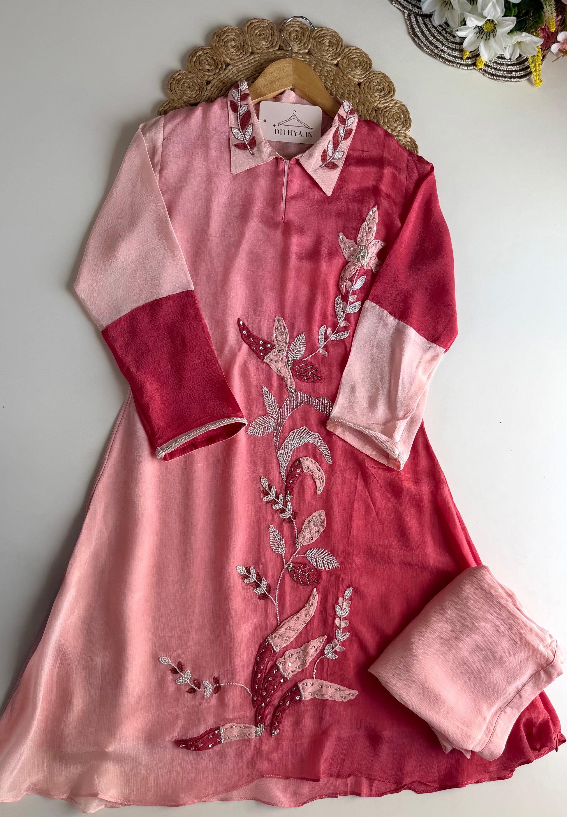 Elevate your style with our K073 Pure Chinnon handwork coord set. Made from luxurious pure Chinnon fabric, this set features intricate handwork for a unique touch. Perfect for special occasions or everyday wear, this set offers both elegance and comfort. Elevate your wardrobe today.