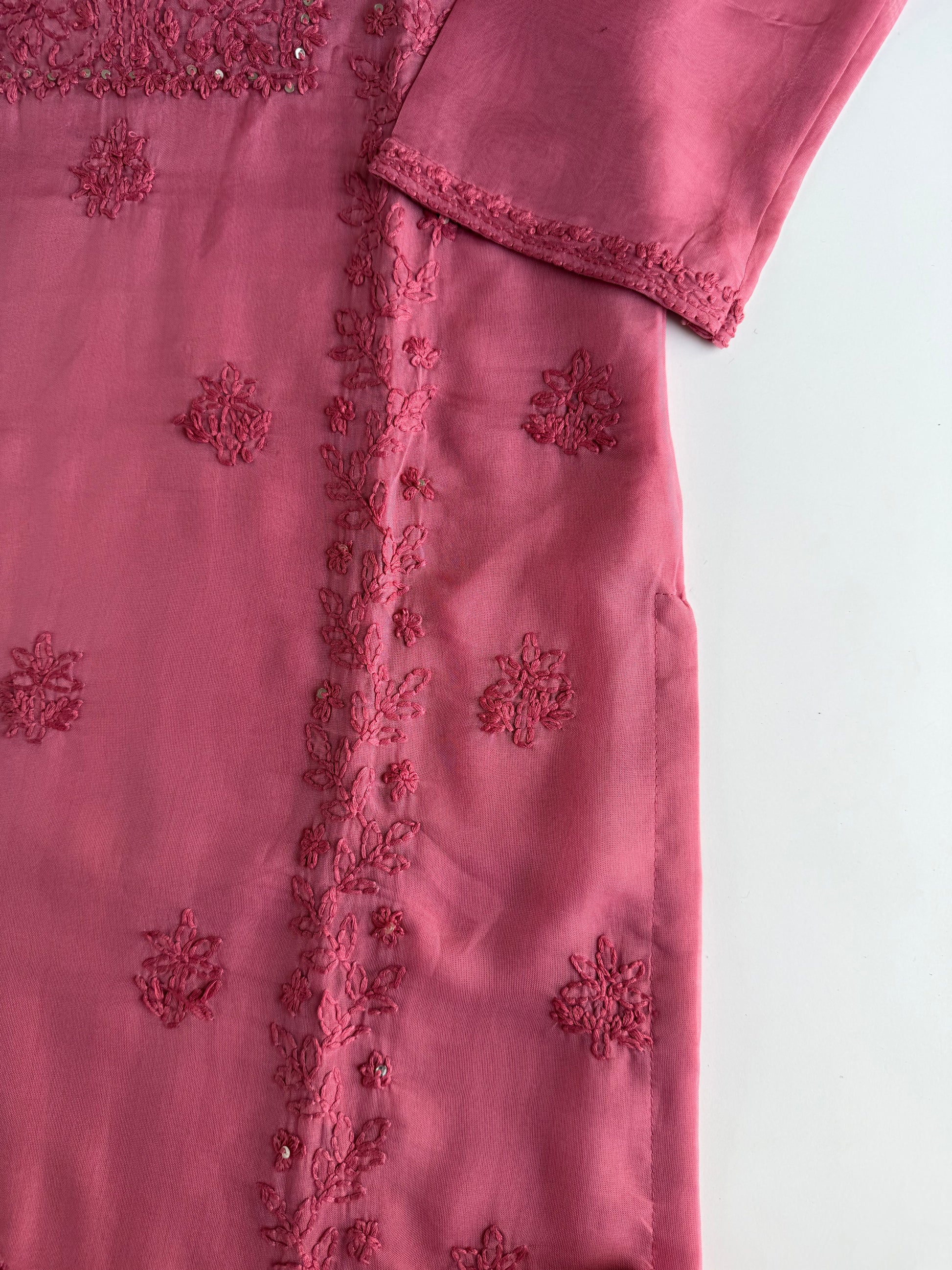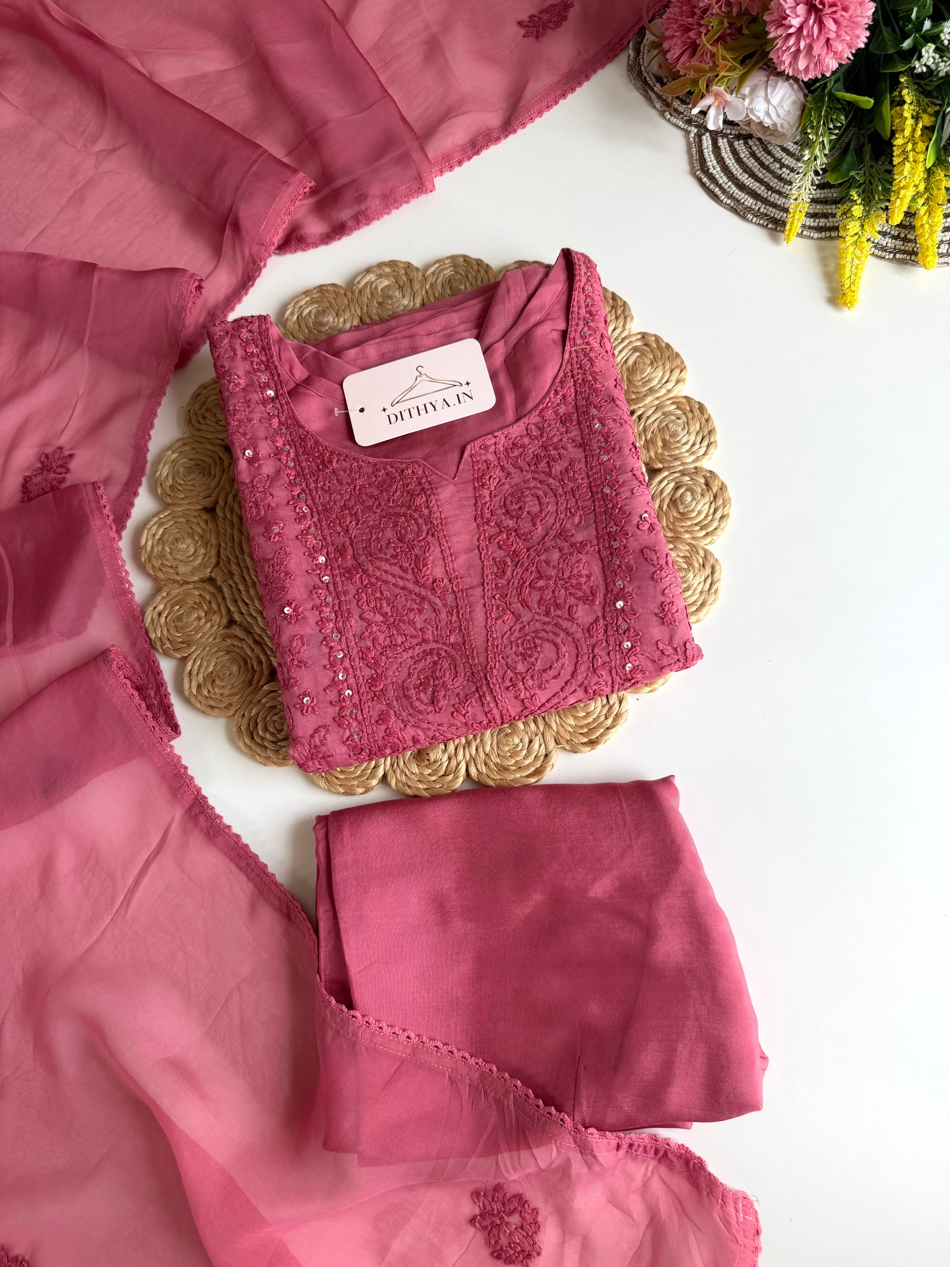 K654 - Viscose organza embroidered straight Kurti with pants and dupatta