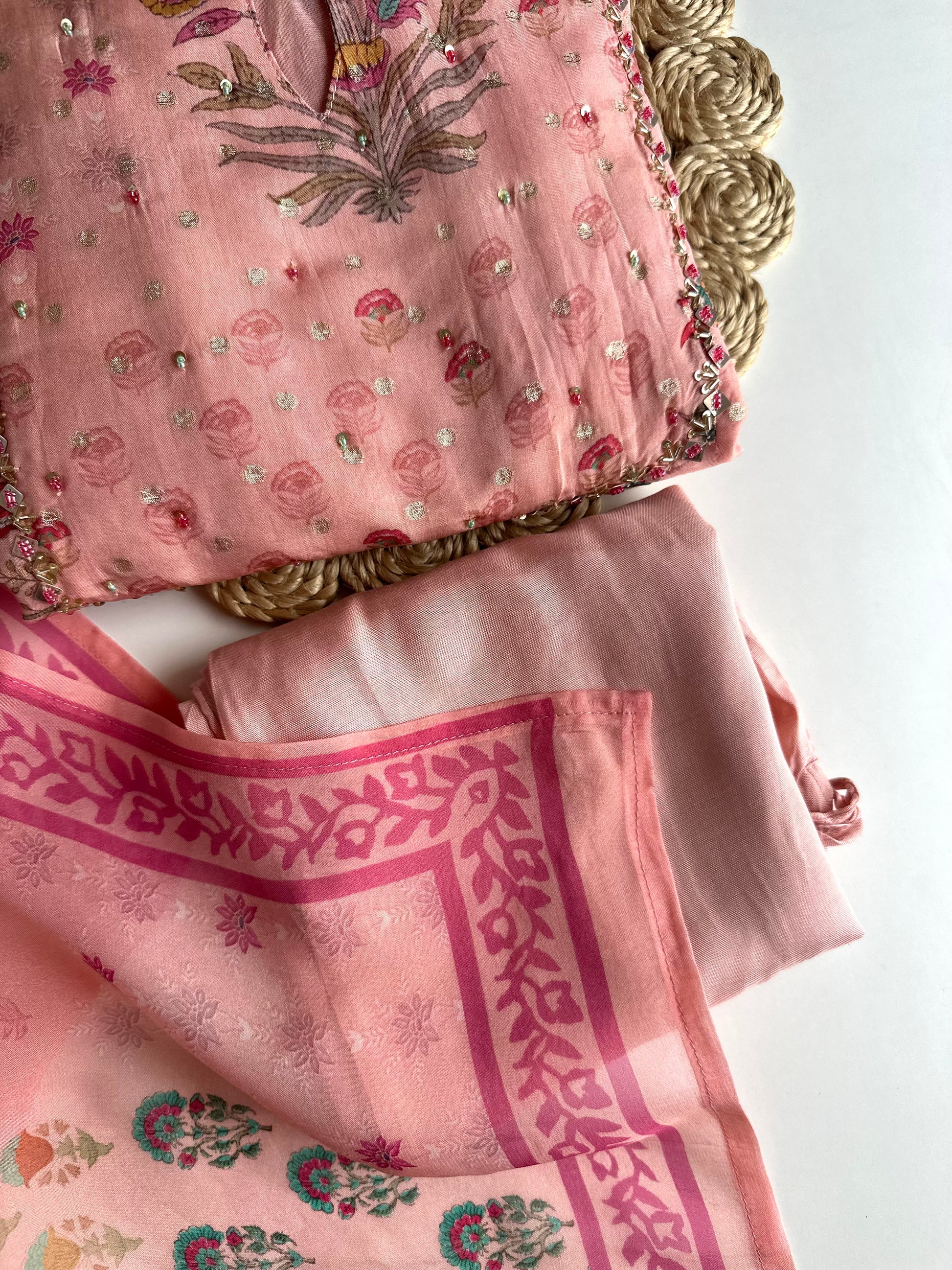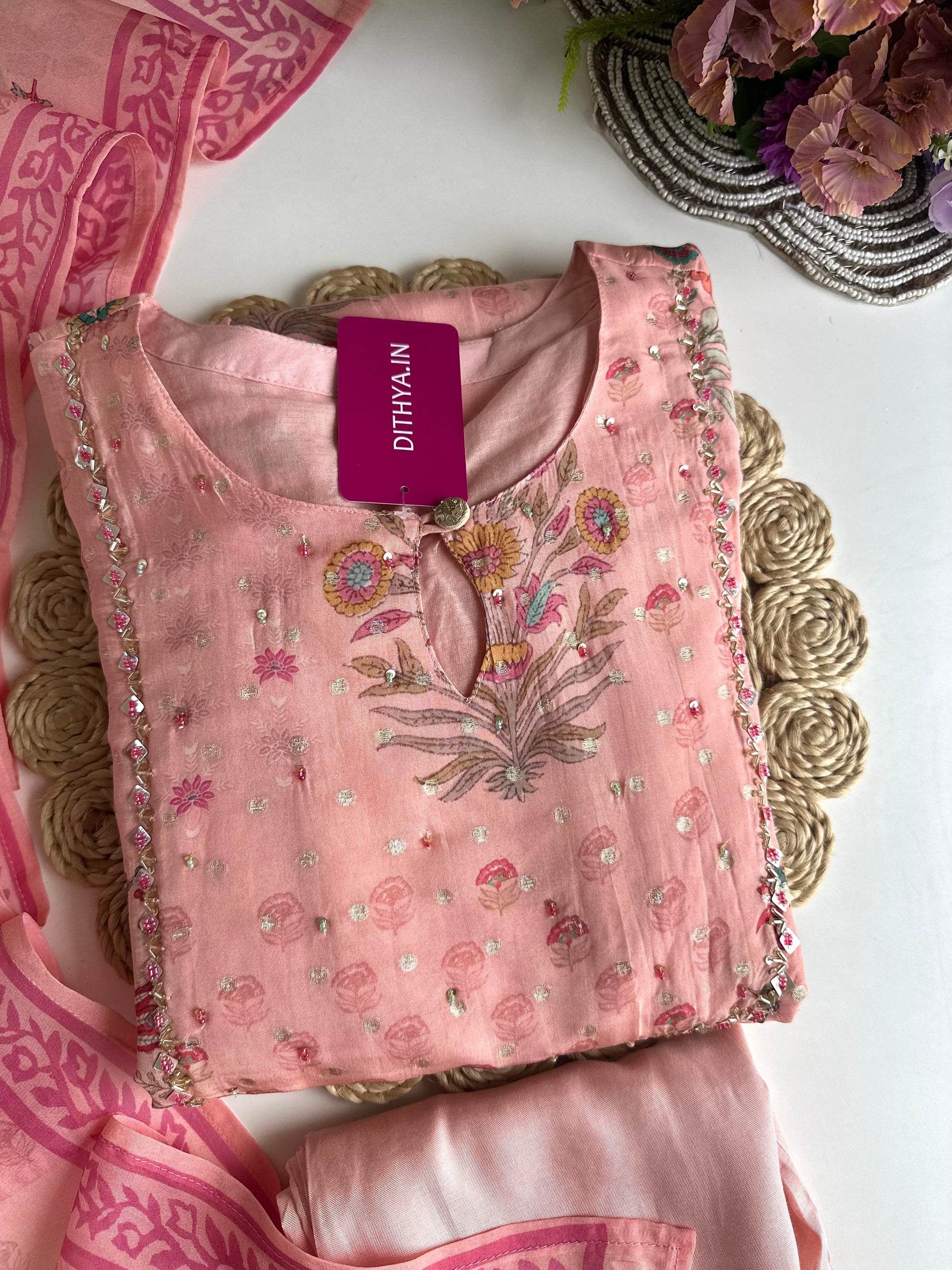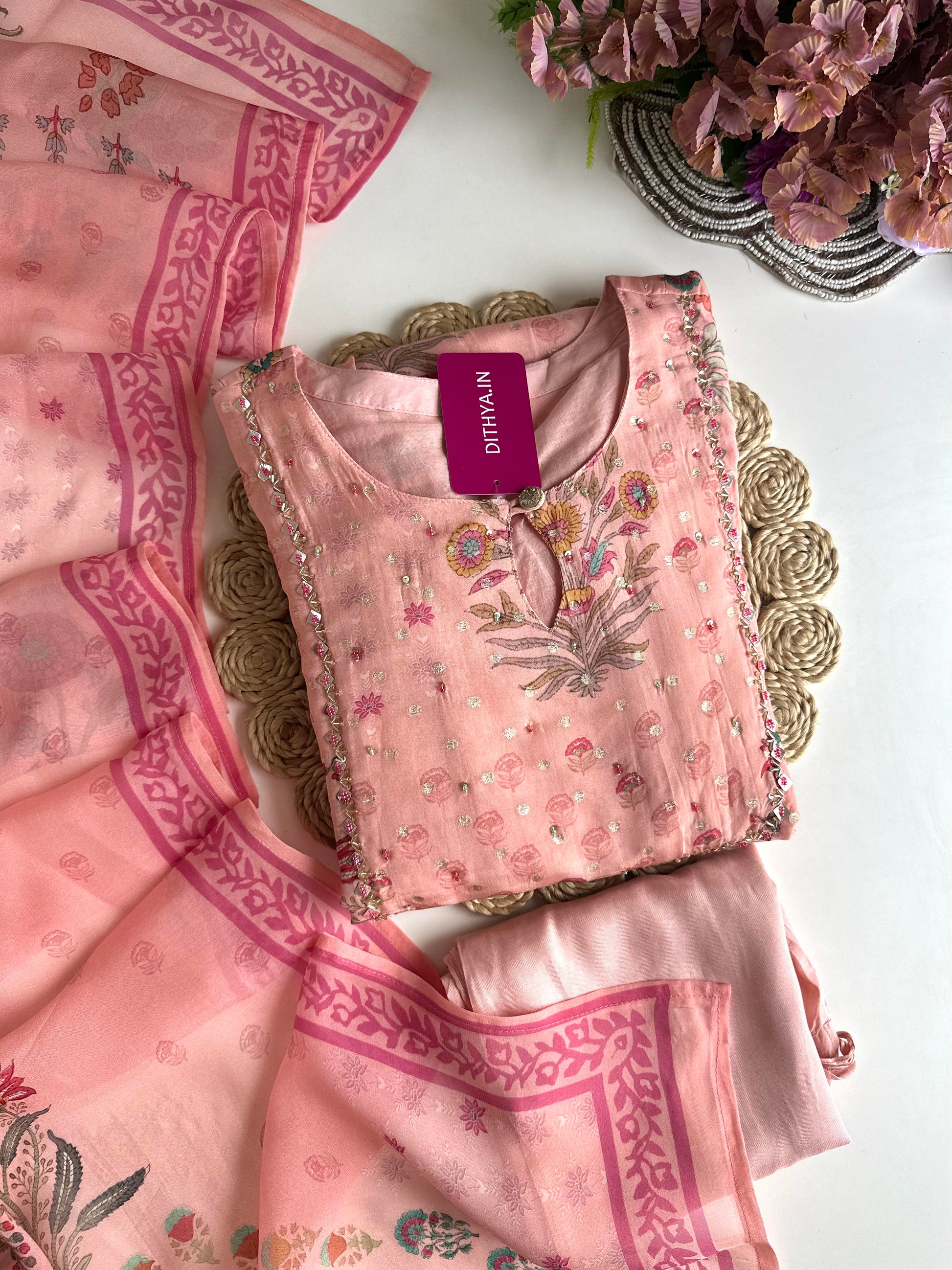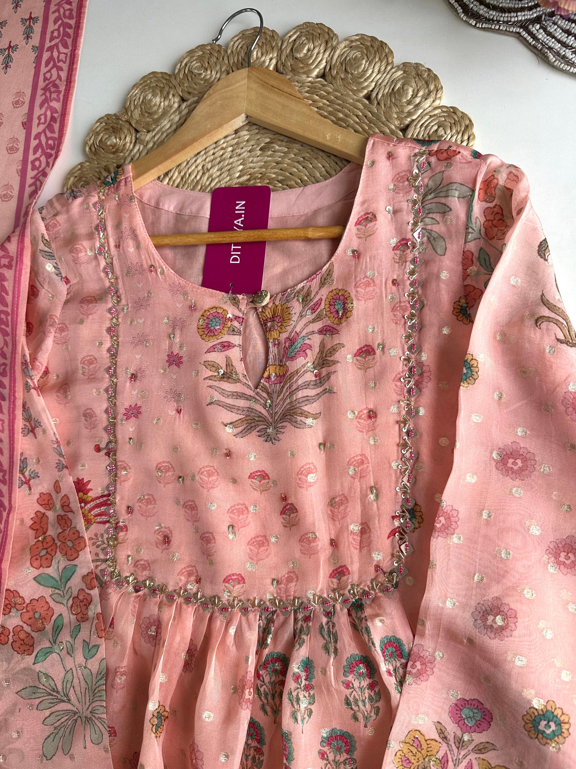 Experience luxury and elegance with our Viscose organza floral Anarkali. Crafted from high-quality viscose organza fabric, this Anarkali set features a beautiful floral design that exudes sophistication. Complete the look with the included pants and dupatta. Elevate your wardrobe with this timeless piece.