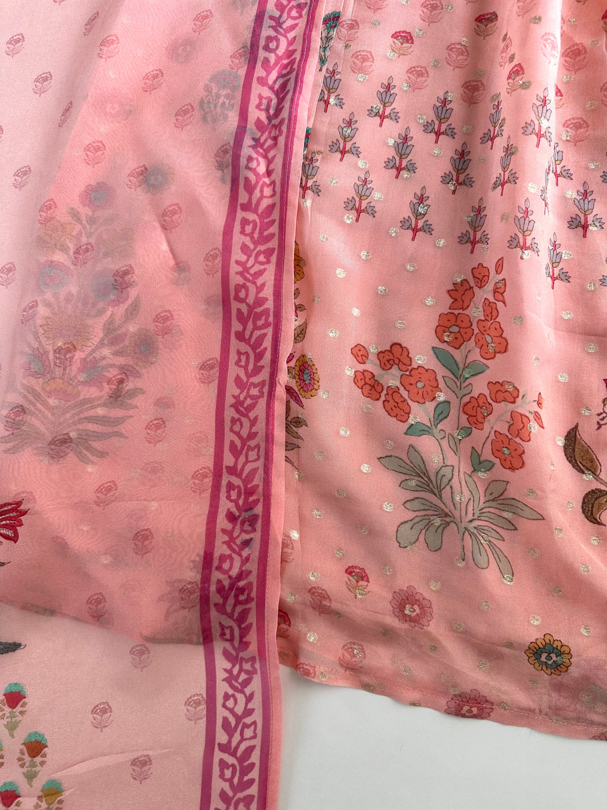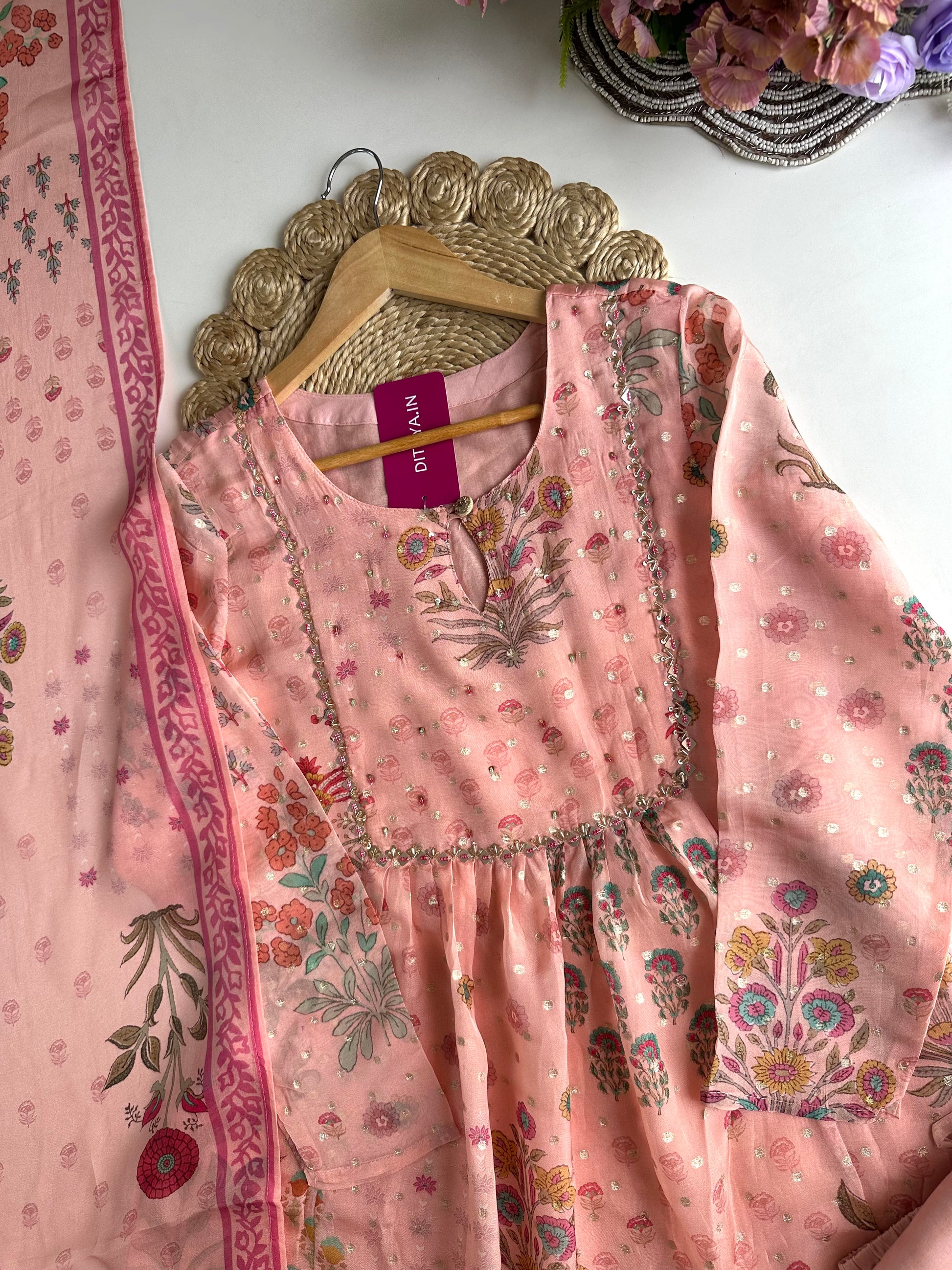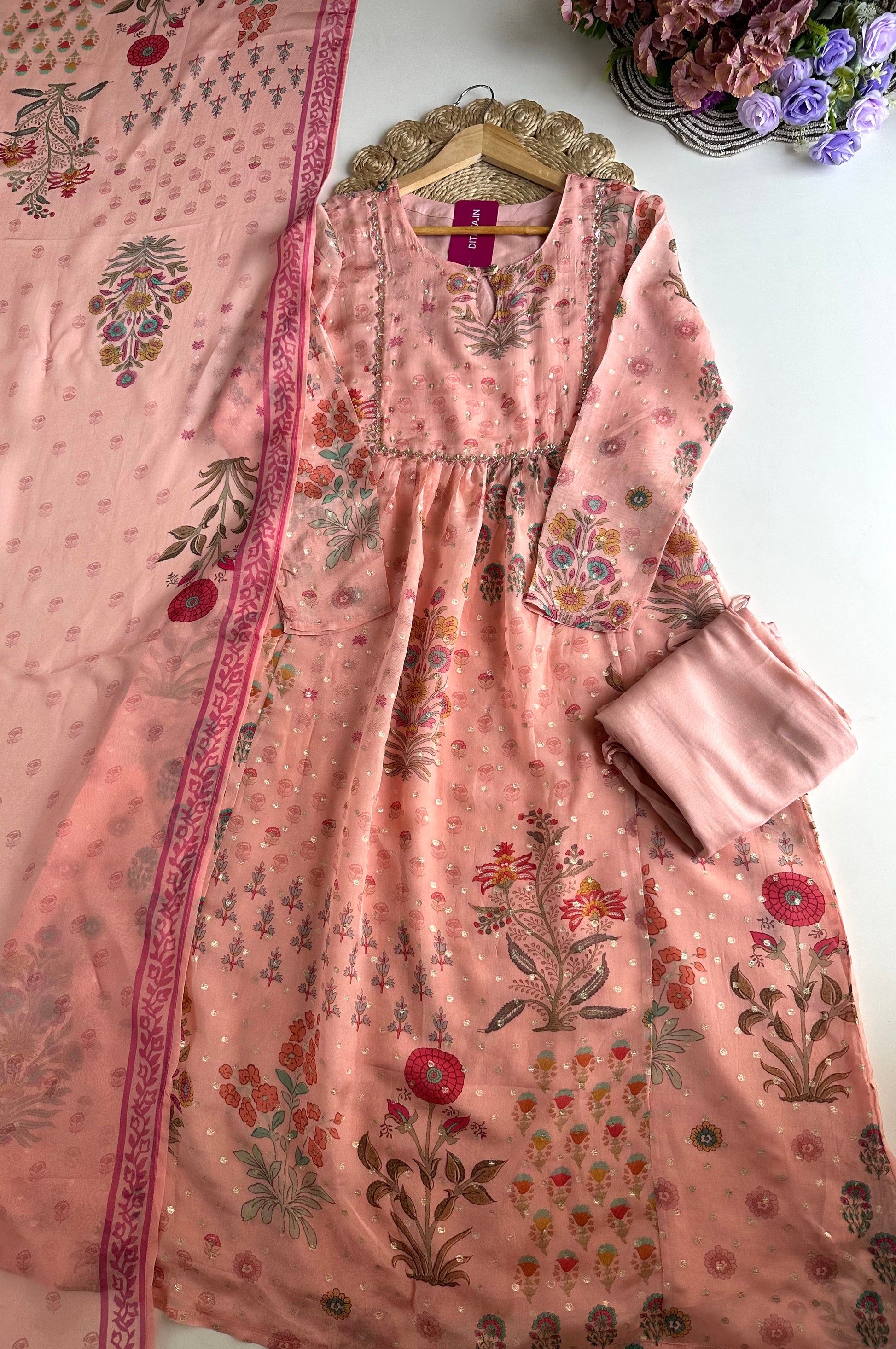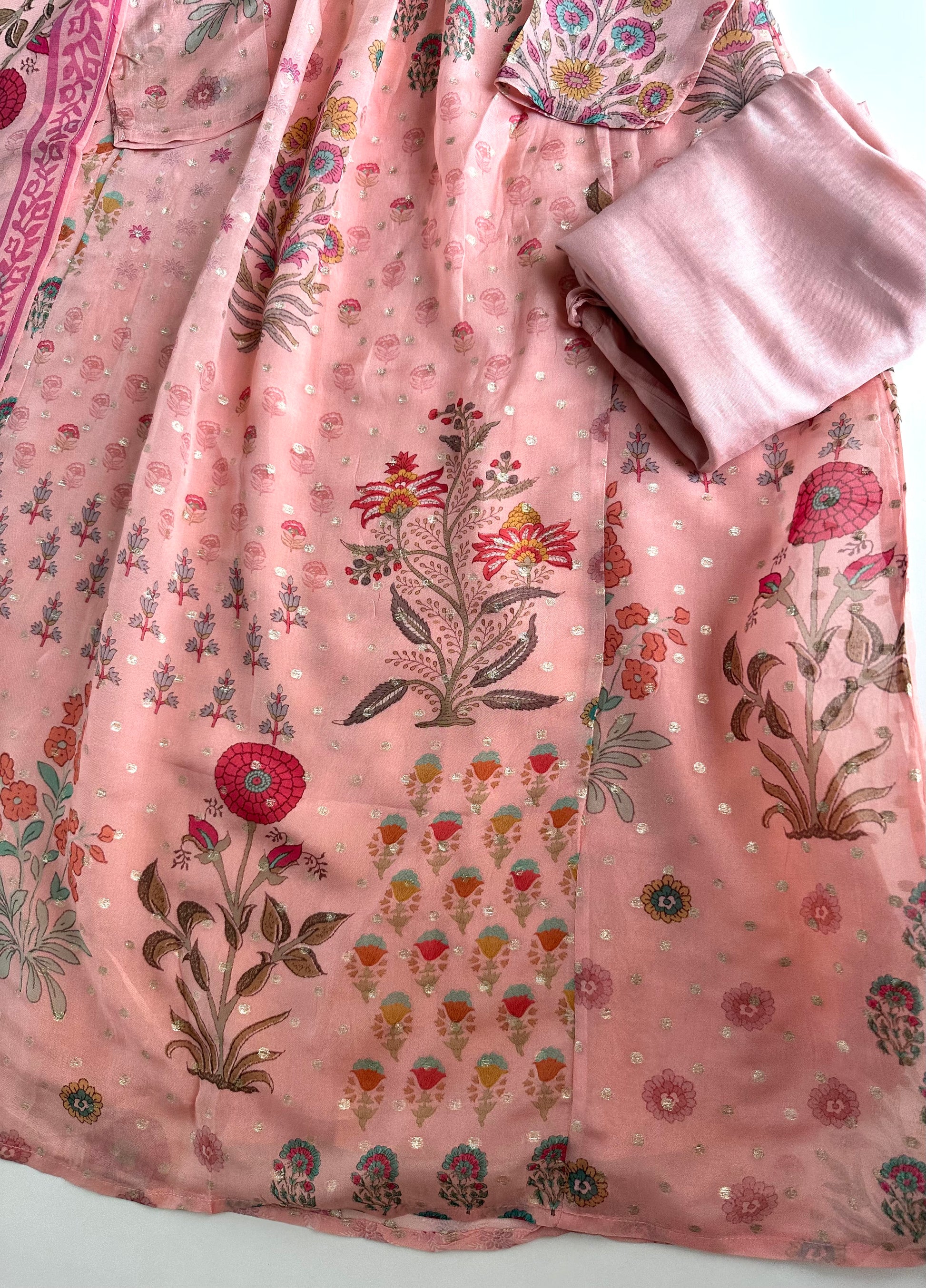K424 - Viscose organza floral Anarkali with pants and dupatta