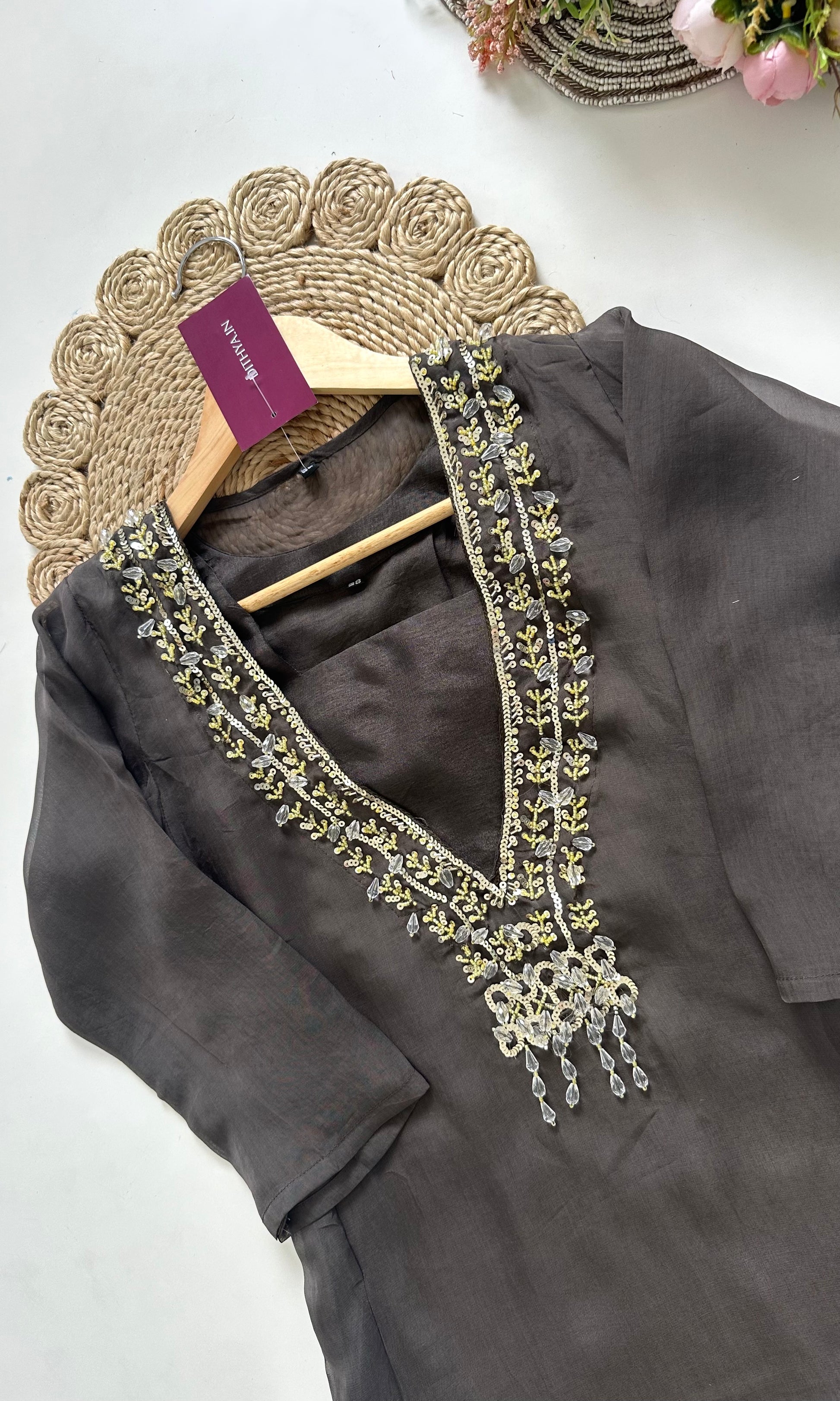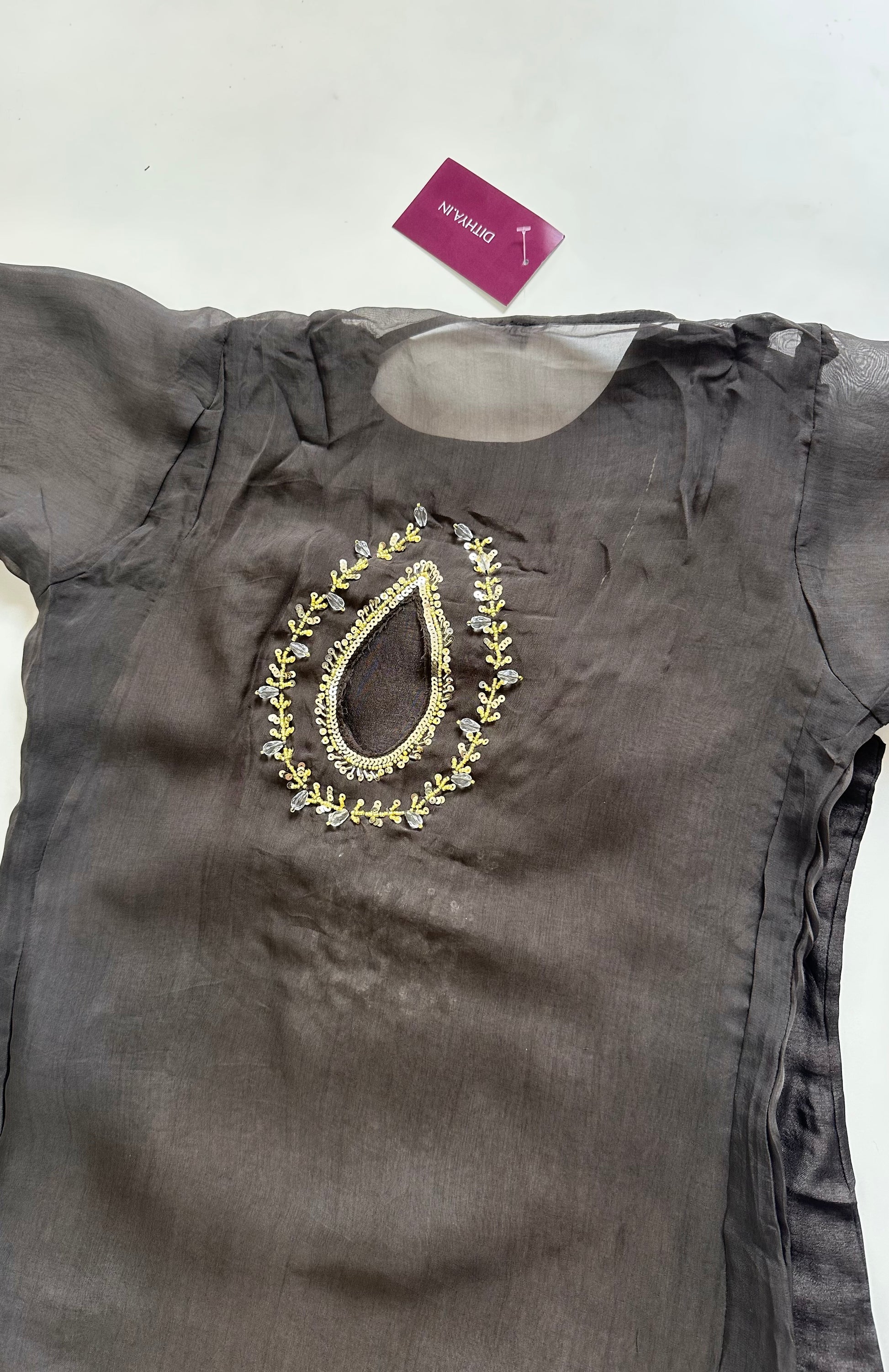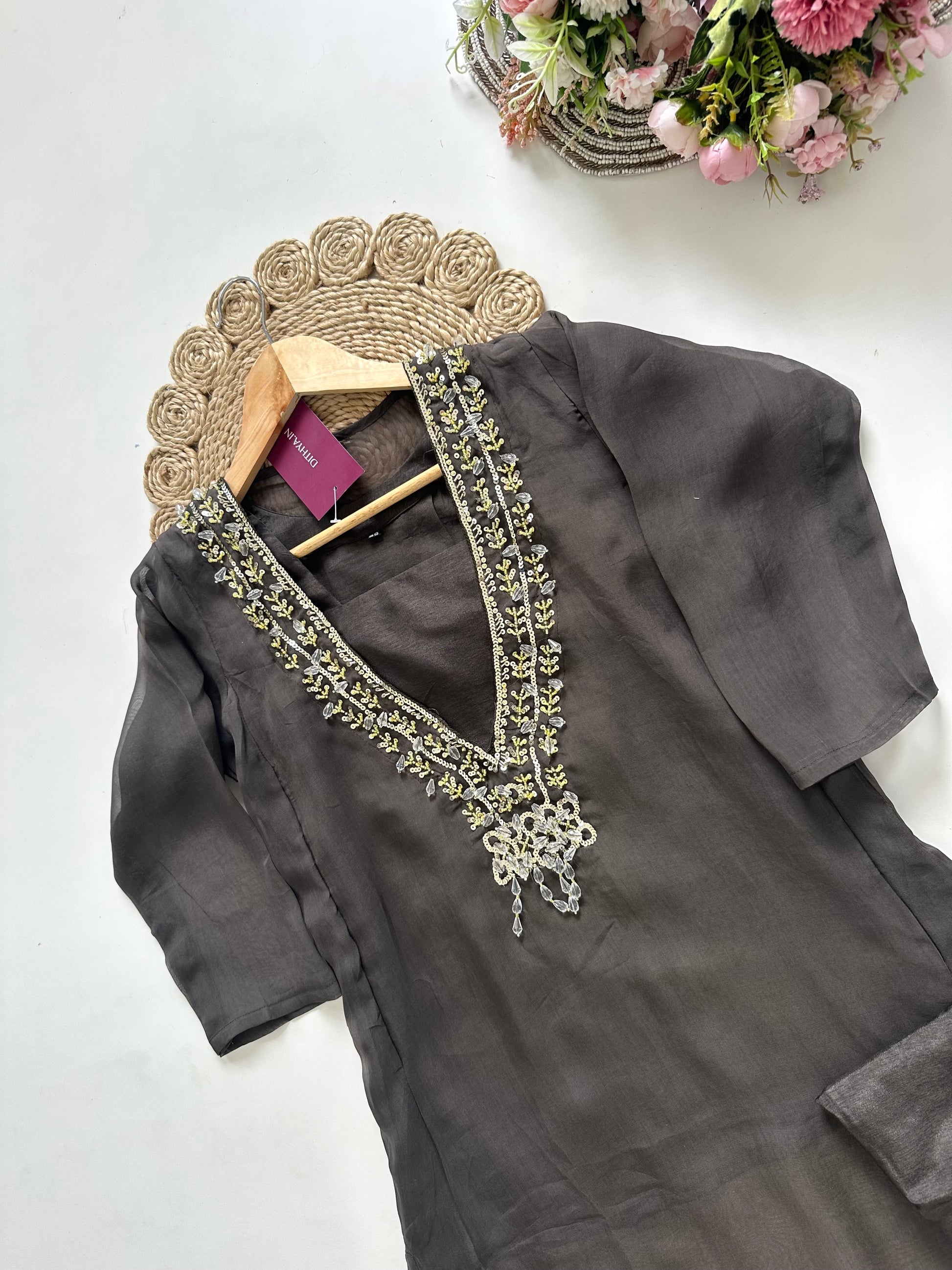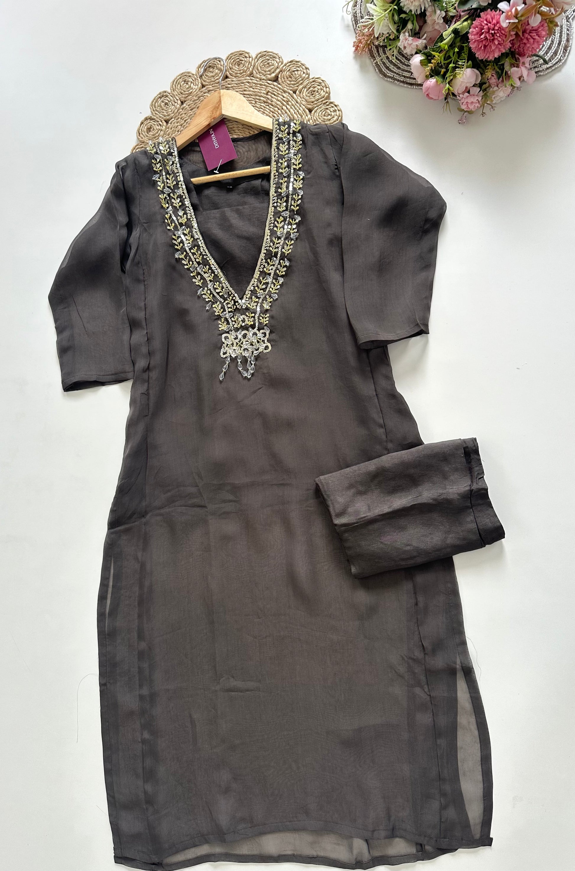 K025 - Viscose organza Handwork Straight kurti with inner and pants .