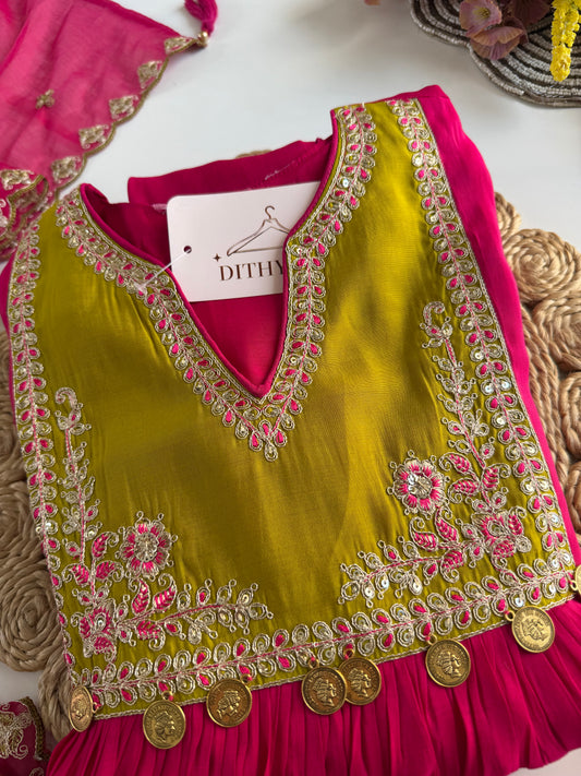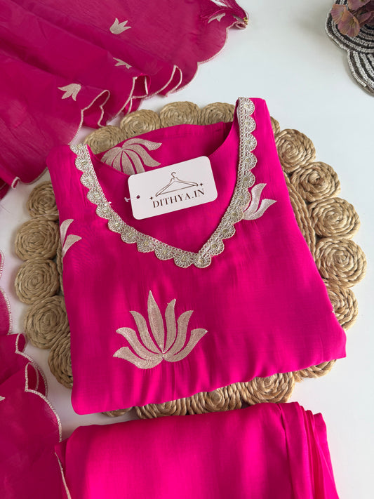 K308 - Chinnon handwork Aline Kurti with pants and dupatta